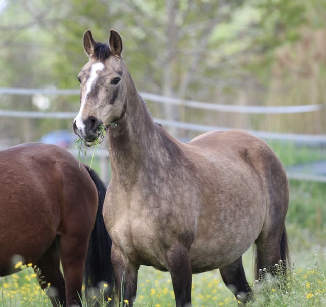NALA è una bellissima pony di razza tedesca con un'ottima genealogia e in un colore fantastico! Ha energia, è sensibile e ama lavorare. Nala è ben addestrata di base, lavora anche con bambini e adolescenti avanzati durante le lezioni e ama le lunghe passeggiate. Da noi viene addestrata secondo il Natural Horsemanship. Inoltre, sale sul trailer in modo affidabile, è tranquilla per il maniscalco, è vaccinata e sverminata regolarmente e ha avuto il suo primo puledro nel 2023 (disponibile anche in vendita). È stata una madre eccezionale, tutto è andato liscio e senza problemi. Nala è tenuta in un paddock all'aperto robusto in un branco misto. È sana, sicura nei movimenti e facile da gestire e nutrire. In caso di forte infestazione di zanzare vicino a corsi d'acqua, tende a sviluppare un leggero eczema estivo, che può essere trattato bene con una crema. A causa del suo temperamento e della sua sensibilità, non è in vendita a principianti dell'equitazione. Altezza al garrese 1,42 m.