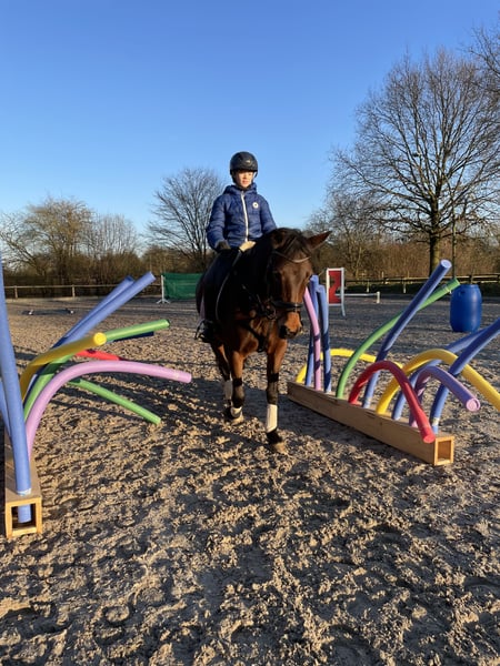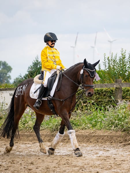 * Age: 11 years * Breed: German Riding Pony, registered in the Stud Book I of the Westphalian Horse Registry * Height: 148 cm (with shoes) Unfortunately, she is only conditionally rideable due to a diagnosis. A few times a week in the countryside or groundwork is possible without any issues, but regular riding in the arena is not feasible. She is absolutely well-behaved in handling, but can also be quite sensitive. We originally purchased her as a mother-child pair and had a lot of joy with her. A fixed person of reference is important to her. She is accustomed to box housing with daytime turnout, but also has experience with 24/7 turnout in the summer. Due to her lineage, she is also interesting for breeding. She has already produced a foal that is currently successful in dressage at the L level. Bred by the Hesselteich Stud, Lucky Lao II x Gandalf. Lucky Lao II has not only made an impact in show jumping but also left a lasting impression in breeding. Among his outstanding offspring is the licensed and awarded stallion Hesselteichs Lucky Dancer, known for his strong inheritance. Furthermore, descendants such as the state premium mare Hesselteichs Lillyfee II and Lia Delicia 2 have impressively confirmed the breeding quality of Lucky Lao II. If you are interested, please feel free to contact us.