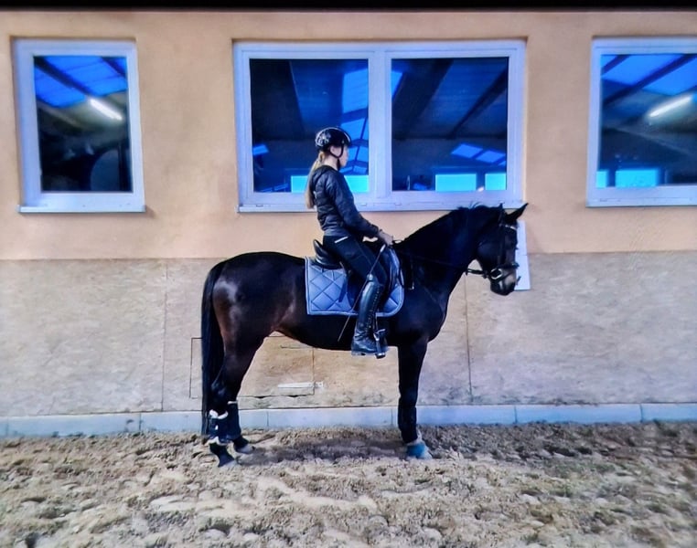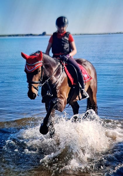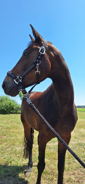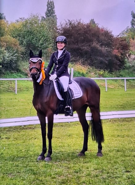 Panamera is a 13-year-old mare by Strahlemann out of Galileo/ Constantin, with a height of 154 cm (measured as an end-size pony at 148 cm). We have owned her since February 2019, having purchased her directly from the breeder. The pony has no vices whatsoever. She possesses above-average movement and an impressive presence with plenty of expression. She is the perfect partner for advanced dressage, eventing, or show jumping. Due to her size, she is ideally suited for both young, emerging riders and more experienced equestrians. Panamera has been regularly presented at riding days and competitions, achieving multiple wins in dressage up to A* level and placements in A** classes. During winter training, she has been prepared with dressage exercises at L-level and is fully ready for the upcoming competition season. In jumping, she has been competed at E-level with successful placements. In training, she has jumped up to A-level but could benefit from further development in this discipline. She clearly enjoys jumping, which makes a sport career in show jumping or eventing very feasible. The pony has already participated in cross-country training sessions with her rider, which she thoroughly enjoys. In handling, Panamera is well-mannered, friendly, and very affectionate due to her people-oriented nature. In the herd and stable, she is approachable and curious towards other horses and humans. She is the dominant mare in her herd. Currently, Panamera spends her days on pasture in a mixed herd and stays in her box at night. She is shod, load-trained, and very well-behaved during veterinary visits (vaccinations and teeth checks). She is four-hoofed and has been regularly vaccinated and dewormed. Her teeth are checked as needed (at most every two years). She has always been in excellent health with no prior illnesses. Panamera has previously foaled a foal, which she delivered and cared for without any issues. Panamera is a pony with a big heart. We are therefore seeking a new, 5-star home where she can ideally find her final place. The mare is not available as a school horse or to dealers. Price is secondary to finding the right home. This is not an emergency sale. If you are looking for a reliable and talented partner with whom to achieve shared success, please contact us to arrange a viewing and trial ride. A trial ride costs €35, which will be deducted from the purchase price. Please feel free to contact me for further information.