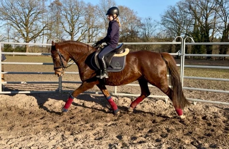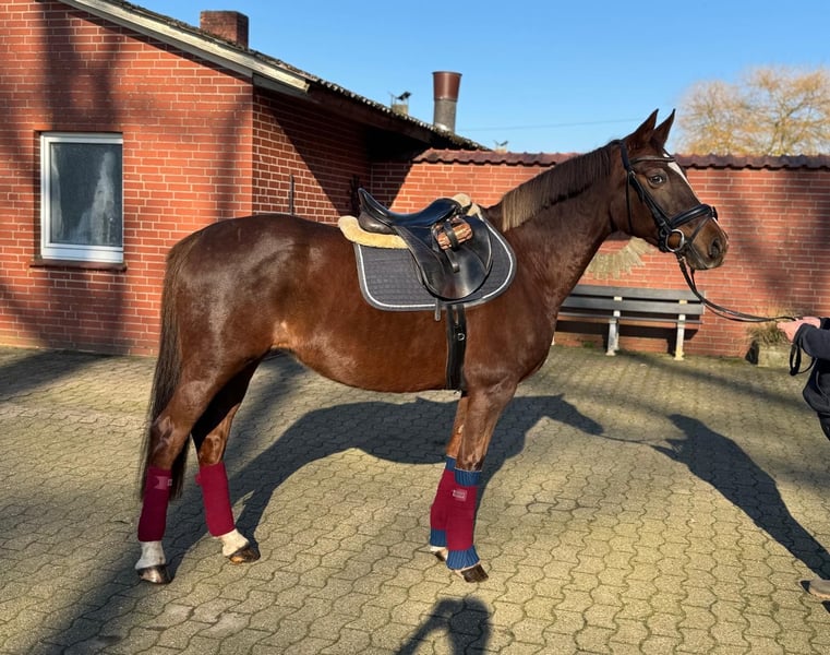 Staatsprämienstute Deutsches Reitpony – bewährte Zuchtstute, erfolgreiche Nachzucht, FS Don’t Worry Zum Verkauf steht eine außergewöhnlich gezogene Staatsprämienstute des Deutschen Reitponys, geboren 2013, mit sehr gefragter und heute nur noch selten anzutreffender Abstammung. Abstammung: FS Don’t Worry × FS Cocky Dundee Allgemeine Daten: • Rasse: Deutsches Reitpony • Geschlecht: Stute • Geboren: 21.03.2013 • Farbe: Dunkelfuchs • Stockmaß: ca. 155 cm (XL-Pony) • Prämierung: Staatsprämienstute • Nutzung: Zuchtstute oder Freizeit • Die Stute wurde bei uns nicht geritten, allerdings haben wir sie wieder angeschoben, dabei zeigte sie sich sehr brav und war sofort für einen Ausritt, für Dressurarbeit und für einen kleinen Sprung zu haben. Ein Mädchen im Alter von 10 Jahren konnte sie problemlos reiten. Sie war bei uns allerdings ausschließlich Zuchtstute. Bewertung der Stutbucheintragung • Gesamt: 7,75 Einzelnoten können nach Anfrage eingesehen werden ⸻ Zuchtleistung: • Insgesamt 7 Fohlen • Nachkommen erfolgreich in: • Reitpferdeprüfungen • E–L-Dressuren • Mehrere Nachkommen sehr kindertauglich, zahlreiche Wettbewerbserfolge mit Kindern • Eine Tochter wurde als Hunter nach Amerika verkauft • Die bislang gerittenen Nachkommen überzeugen durch Charakter, Rittigkeit und Nervenstärke, können auch springen Die Stute hat sich als zuverlässige Vererberin mit Fokus auf Umgang, Leistungsbereitschaft und Familienfreundlichkeit bewährt. Da Sie keine Turniererfahrung hat, wird Sie als Freizeitpony verkauft!