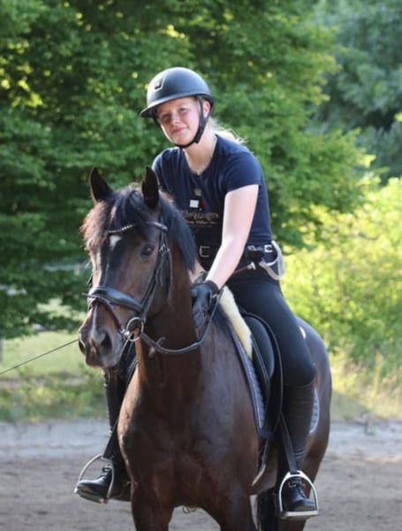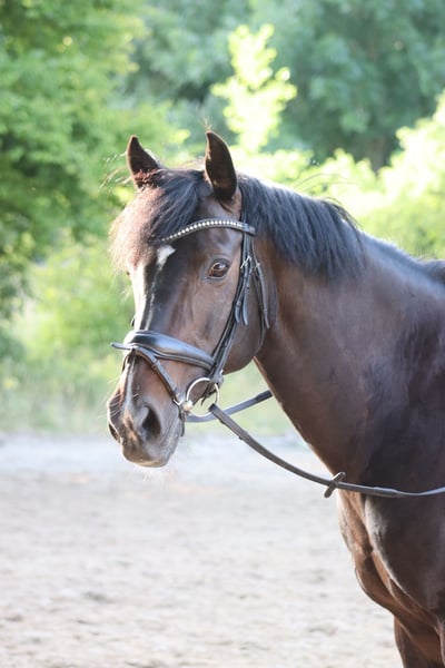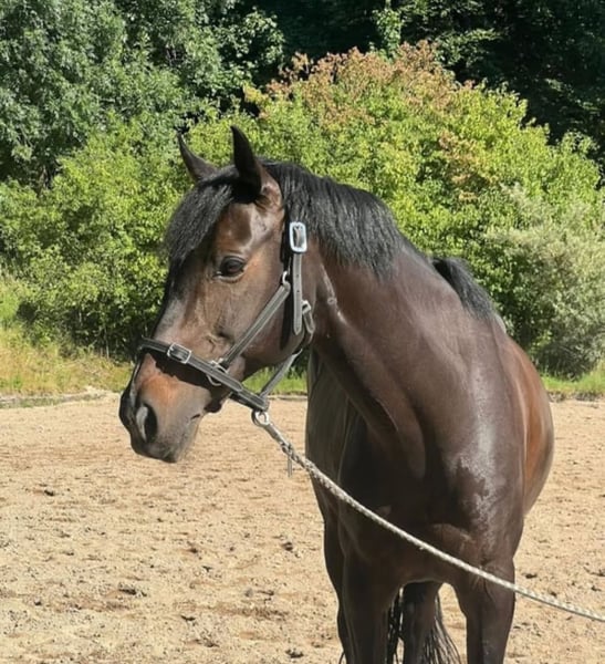 Our 14-year-old full-sized pony mare Luna is looking for a new, loving home where she can truly settle in. When Luna came to us about 3 months ago, she brought some disobedience with her. However, it quickly became clear that she is simply a sensitive pony that wants to be loved and understood. When given trust and affection, she excels and gives her heart to her person. Luna is a people-oriented mare who loves to spend time with "her person." In everyday life, she is well-behaved, reliable, and a true partner. She is also safe and fearless in the field, making her a great companion. In addition to her wonderful personality, Luna also brings sporting achievements: she is placed in A-level dressage and A-level jumping, demonstrating her skills both in the arena and over jumps. She sometimes needs a bit of reassurance from above in jumping, as she reacts sensitively there – but with the right support, she will gain confidence in this area as well. Another highlight is that we can also ride Luna without a saddle, using a neck ring or pad, and she remains calm and reliable, making her even more of a true heart pony. Additionally, she is easy to load and great with the farrier.