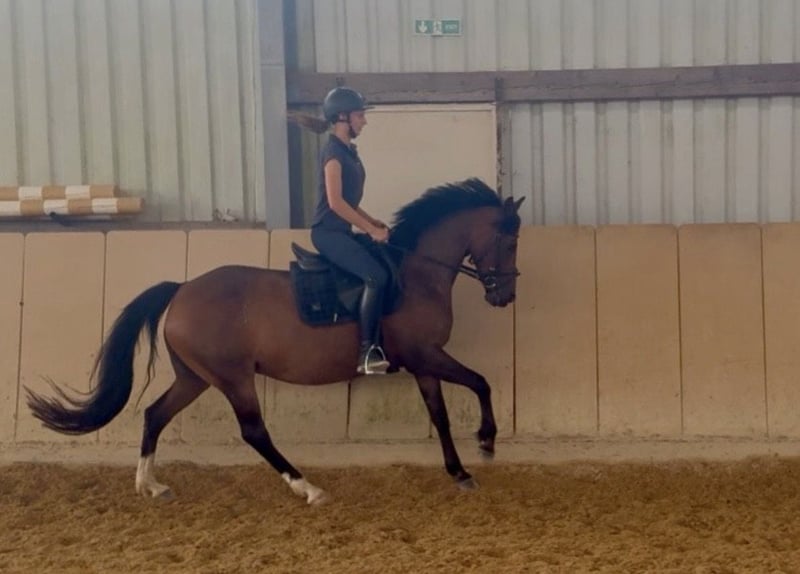 schicke unverbrauchte Reitponystute von Novalis T x Going East. Nach Einsatz in der Zucht mit vielen guten Nachkommen seit letztem Frühjahr wieder im Training und sofort einsatzbereit als Reitpony, aktuelle Videos sind vorhanden und können gern verschickt werden. 2011 geboren und 1,45m groß, deckt sehr gut ab. Mit viel Go ausgestattet und sehr fein an den Hilfen stehend verfügt die Stute über drei sehr gute GGA und macht einen guten Sprung. Immer brav im Umgang, geht alleine und in der Gruppe ins Gelände und kennt Offenstallhaltung und nachts Box mit tagsüber Koppel und Paddock. Anrufe und Videos gerne unter 0176-70317184