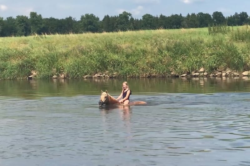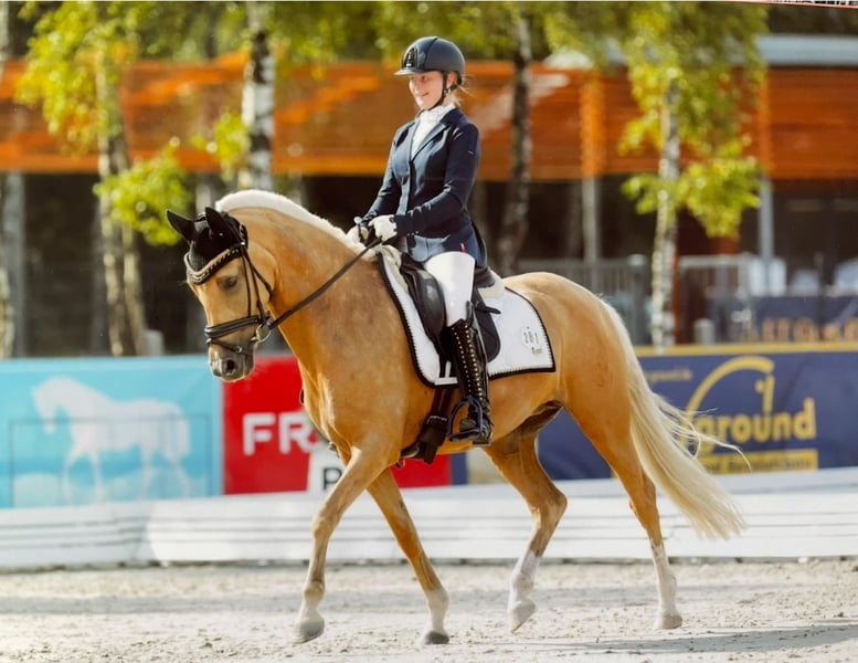 With a heavy heart, we are offering our pony princess for sale. She is a German Riding Pony mare – Palomino, born in 2011, and was bred from the stallion Don’t Worry and Arts-Dancer Boy. Not only is she a real eye-catcher in appearance, but despite her height of 146 cm, she covers very well in the stallion type, and we are often asked if she still meets the size requirements. Our Mary is a true prize winner, an excellent teacher, and a reliable partner in all aspects of life. She loads independently onto trailers and transporters, and she comfortably stands for the farrier and clipping. She knows how to present herself confidently at competitions. She has achieved success at L* level, mostly against larger horses, and has been placed high in L** classes – there is certainly potential for further development here. She is a secure L** level lesson horse and is easy to handle even for smaller, less experienced riders. She has been district champion and winner of the Volksbank Cup, among other accomplishments. Mary has a very sweet nature and truly is a princess. She is open to almost any kind of fun, loves swimming, enjoys hacks, and likes jumping – although we have not actively promoted her in this discipline. As a member of the Lower Saxony Pony Quadrille, she has participated confidently in several major events, including the CHIO Aachen opening ceremony (on the famous grass arena), the Hamburg Derby, the Horse & Hunt, and many others. She has never been ill with us and has never been in a bad mood. We are not in a hurry to sell her and will only part with her if we find a truly wonderful princess home for her. If you are genuinely interested, please contact us via WhatsApp at 016097233628.