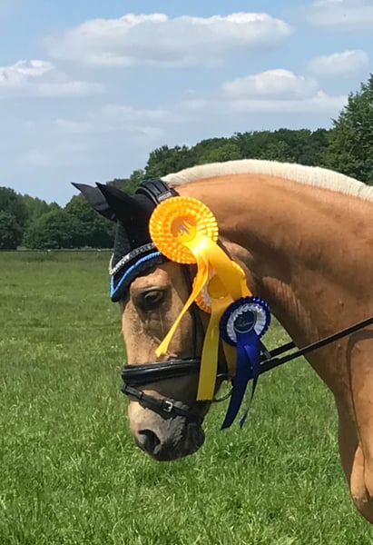 Met pijn in ons hart bieden wij onze ponyprinses te koop aan. Ze is een Duitse Reitpony-merrie – Palomino, geboren in 2011, en is gefokt via de hengst Don’t Worry en Arts-Dancer Boy. Ze is niet alleen een echte blikvanger qua uiterlijk, maar ondanks haar hoogte van 146 cm dekt ze, in hengsttypestijl, zeer goed af. We werden vaak gevraagd of ze nog binnen de maat valt. Onze Mary is een echte medailleverzamelaar, een geweldige leermeesteres en een levensverzekering in alle situaties. Ze gaat zelfstandig op trailer en transportwagen, slaapt al graag tijdens het hoefsmidbezoek en het scheren. Op wedstrijden weet ze zich goed te presenteren. Ze heeft bijna uitsluitend tegen grote paarden gewonnen in L* en is hoog geplaatst in L** – hier is zeker nog potentieel voor meer. Ze is L** leszeker en ook goed te hanteren door kleinere, minder ervaren ruiters. Ze was onder andere Kreismeester en winnaar van de Volksbank Cup. Mary heeft een heel lief karakter en is echt een prinses. Ze staat open voor bijna alles, zwemt graag, houdt van buitenritten en springt graag – al is dat bij ons niet verder ontwikkeld. Als lid van de Niedersächsische Ponyquadrille heeft ze meerdere keren, onder andere op de openingsceremonie van CHIO Aachen (op het heilige gras), het Hamburger Derby, de Pferd & Jagd en vele andere evenementen, zelfverzekerd deelgenomen. Bij ons is ze nooit ziek geweest en nooit een dag slechtgezind. We hebben geen dringende reden om haar te verkopen en geven haar alleen weg als we een echt geweldig prinsessenhuis voor haar vinden. Bij serieuze interesse neem alstublieft contact op via WhatsApp onder 016097233628.