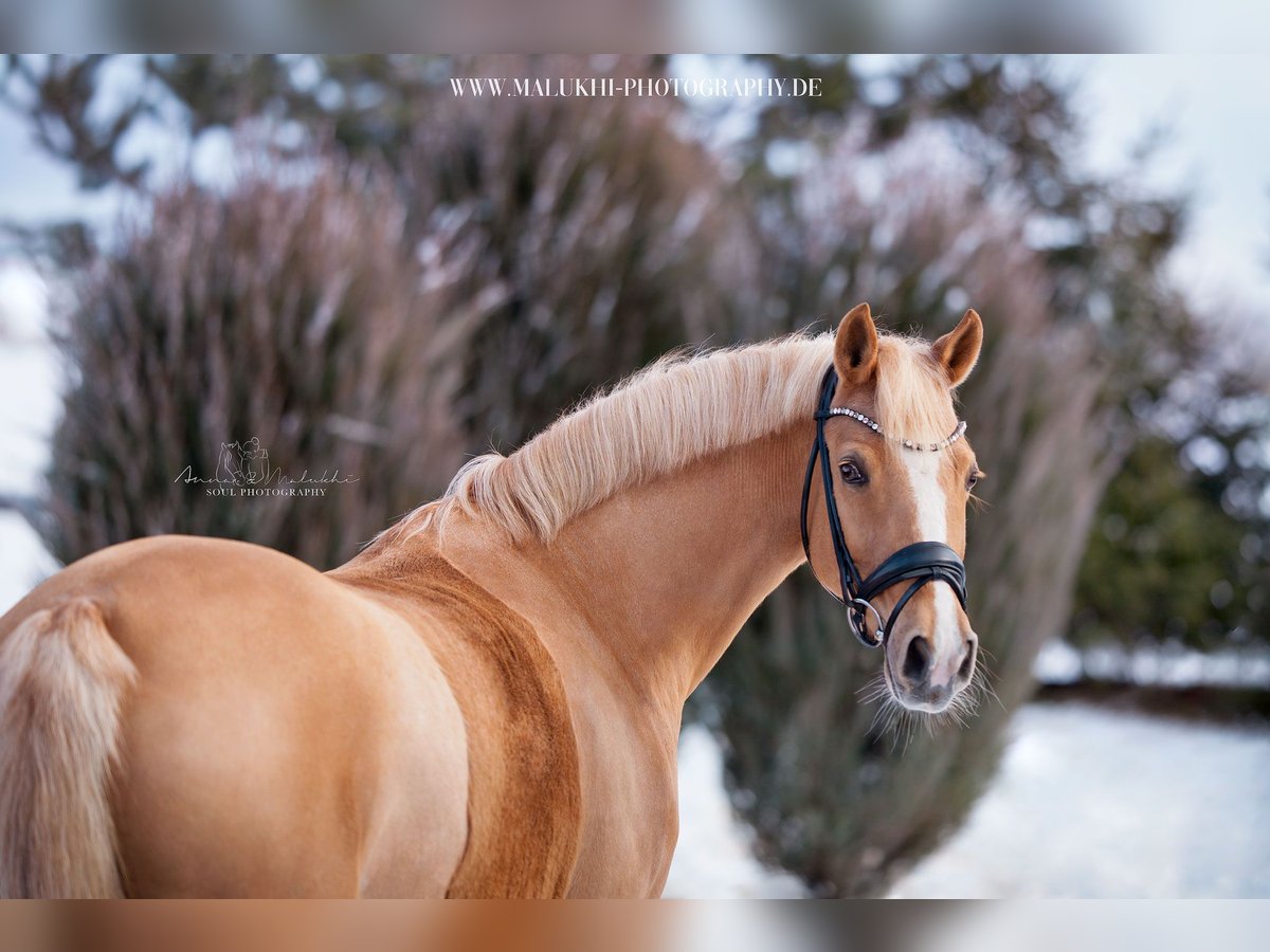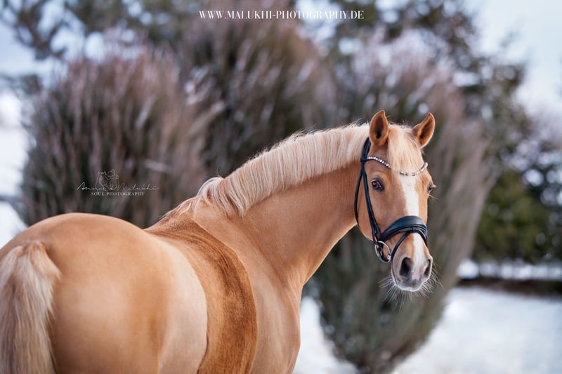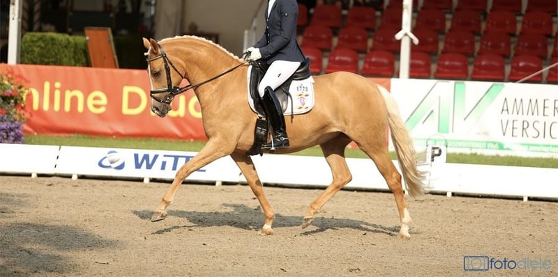 ✨ Exquisite broodmare with an outstanding performance record ✨ A rare find in a highly sought-after special color – quality for the most demanding standards. For sale is an exceptional Palomino mare by FS Champion de Luxe, born in 2011, standing at 14.6 hh – a combination of proven genetics, athletic talent, and excellent inheritance. This remarkable mare has proven herself impressively both in breeding and sport. All of her offspring have been awarded Gold Foal status, including licensed premium stallions – a striking testament to her consistent quality inheritance. Under saddle, she impresses with rideability, attitude, and willingness to perform. Placings up to dressage level L on double bridle and participation in the Bundeschampionat highlight her sporting potential. She combines charisma, performance ability, and breeding value in a rare way, making her ideal for ambitious breeders or riders with high aspirations. The sale is exclusively due to her own offspring. The mare can be covered again immediately or further developed in sport. For further information and to arrange a personal contact, please call: 0152 26550431 Additional selected quality dressage ponies available upon request. Discretion and professionalism are expected.