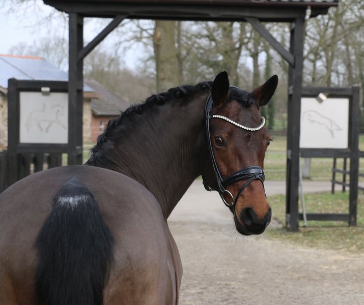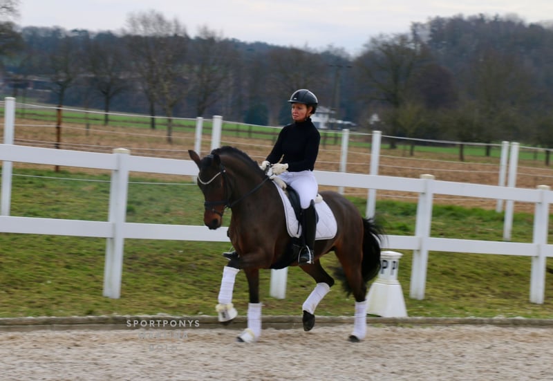 ‼️Anfragen exclusively via the telephone number below ‼️ Location: 49509 Recke | mare | DR | bay | *2010 | 147 cm | FEI passport | v. HET Golden Dream x Verdi Beautifully presented professor with a pony heart of gold! There is no other way to describe the 15-year-old "Godiva" True to her stable name "Happy", she wants to give her rider pleasure every day anew with her absolute willingness to perform, her reliability in lessons and her fearless nature. "Godiva" has a great deal of competition experience and can boast numerous wins and placings from riding competitions to L** tests with percentages of up to almost 72%. She has also been placed in medium (M) level dressage competitions, but this has not been further promoted as she has recently been used exclusively in FEI competitions. In addition to her athletic quality, she is a real treasure to handle and loves to be groomed and groomed or to go for long walks and rides in the forest. "Godiva" is suitable for beginners or for riders who want to enter FEI competitions directly. A current X-ray certificate including back pictures is available. If you are seriously interested, please call +491707941333.