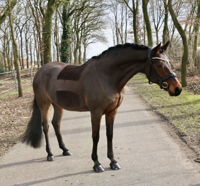 ‼️Zapytania wyłącznie pod podanym poniżej numerem telefonu ‼️ Lokalizacja: 49509 Recke | DR | Klacz | Gniada | *2010 | 147 cm | Paszport FEI | v. HET Golden Dream x Verdi Pięknie zbudowana profesor z sercem z złota! Inaczej nie można opisać 15-letniej „Godivy”; zgodnie ze swoim imieniem stajennym „Happy”, codziennie pragnie sprawiać radość swojemu jeźdźcowi swoją absolutną gotowością do pracy, pewnością w lekcjach i nieustraszoną naturą. „Godiva” ma bardzo duże doświadczenie w zawodach i może pochwalić się licznymi zwycięstwami i miejscami od zawodów jeździeckich po konkursy L** z wynikami sięgającymi niemal 72 %. Ponadto jest sklasyfikowana w M-dresurze, co jednak nie było dalej rozwijane, ponieważ w ostatnim czasie była wykorzystywana wyłącznie w konkursach FEI. Oprócz swoich sportowych kwalifikacji, w obcowaniu jest prawdziwym skarbem i uwielbia być czesana i rozpieszczana, a także chodzić na długie spacery po lesie i jeździć. „Godiva” nadaje się zarówno dla początkujących w zawodach, jak i dla tych jeźdźców, którzy chcą od razu zacząć w konkursach FEI. Aktualny, bezproblemowy przegląd rentgenowski, w tym zdjęcia grzbietu, jest dostępny. W przypadku poważnego zainteresowania prosimy o kontakt telefoniczny pod numerem +491707941333.