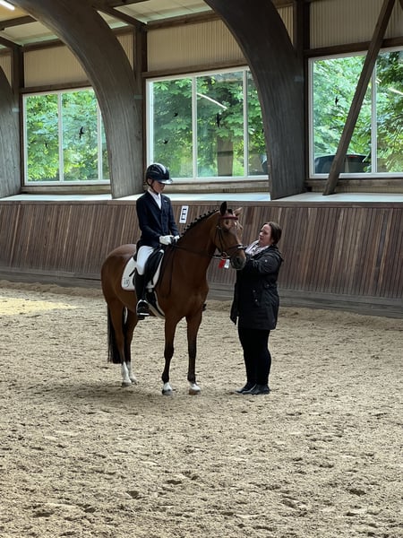 An 18-year-old, attractive, light-bay pony mare standing at 1.42 meters, easy to ride. With a heavy heart, we are selling Crestons Liberty, affectionately known as Katjes, due to a switch to riding horses. She is very beautiful, easy to handle, trained up to dressage L level, and has achieved placements in L dressage competitions. She has won dressage class ** and has several other placements. She is trained up to A jumping level and has won A** competitions. Katjes enjoys jumping very much but always requires a confident rider! She also likes cross-country jumping and has competed up to VA with her previous owners. She is familiar with riding without a saddle. She is well-behaved at competitions and has been competing in rider’s classes in recent years. Please note that she is not sold as a beginner pony, as she can be quite lively and spirited. With a good rider and plenty of turnout, and being familiar with both pasture and box, Katjes can also be suitable for less experienced riders. She suits small adult riders well. She is barefoot and has never been ill with us. No eczema, no laminitis. She is used to mixed herds. She loads well, is farrier-friendly, regularly seen by the dentist, and vaccinated against herpes and influenza. Katjes is available for a trial ride at any time.