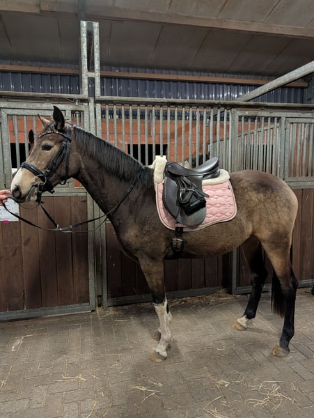 Zum Verkauf steht eine qualitätsvolle Deutsche Reitpony Stute, geboren 2023. Sie ist derzeit ca. 145 cm groß und befindet sich altersgemäß noch im Wachstum. Die Stute überzeugt durch ihre guten Grundgangarten mit viel Takt, Raumgriff und Balance und bringt damit eine hervorragende Grundqualität für Sport und weitere Ausbildung mit. Als Fohlen wurde sie prämiert. Sie kennt Sattel, Trense, Longiergurt sowie Reitpad und wurde bereits anlongiert. Aktuell wird sie schonend an Reitergewicht gewöhnt, was sie ruhig, brav und vertrauensvoll annimmt. Insgesamt zeigt sie sich sehr lernwillig, gelassen und unkompliziert auch mit Kindern und Hunden. Auch beim Gelassenheitstraining präsentierte sie sich äußerst brav und nervenstark. Im täglichen Umgang ist die Stute freundlich, menschenbezogen und angenehm. Sie wurde regelmäßig dem Schmied vorgestellt, die Zähne wurden zuletzt im Herbst des vergangenen Jahres gemacht und sie ist frisch geimpft. Abstammung: Double Cream x Top Zento x Nantano. Ein ehrliches Nachwuchspony mit sehr guter Grundqualität und besten Voraussetzungen für eine behutsame und erfolgreiche weitere Ausbildung. PLATZ vor PREIS. Weitere Informationen, Bilder oder Videos gerne auf Anfrage.