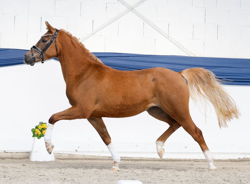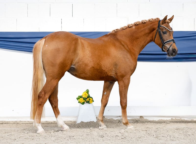 In unserer Kollektion stehen streng selektierte Youngster f�r alle Anspr�che: Ausbildungs-, Zucht- und Kinderponys Hier gelangen Sie zur Gesamtkollektion: https://ponyforum.auction Hier kommt ein klar doppelt veranlagtes Pony! Die dreijährige Merci Cherie ist ein ganz charmantes Pony mit viel Ausdruck. Sie ist gerne mit Menschen zusammen und wächst gefühlt täglich mit den an sie gestellten Aufgaben. Sie versucht immer, ihren Menschen zu verstehen und alles richtig zu machen. Uns gefällt ihr aufgeschlossenes Wesen und ihre freundliche Art sehr, Merci Cherie ist ein ganz umgängliches Pony. Bei ihr hat man die Qual der Wahl – Dressur oder Springen? Oder beides? Denn beides wird eine Option sein. Sie bewegt sich hervorragend und beim Freispringen zeigt sie viel Geschick, Mut und Vermögen. Das Doppeltalent kommt nicht von irgendwo, denn auch ihr Vater Mescal hat bereits bewiesen, dass Ponys nicht nur in einer Sparte erfolgreich sein können! Er startete seine Karriere unter dem Sattel mit dem Doppel-Titelgewinn bei den Springponybundeschampionaten in Warendorf, aktuell ist er allerdings unter dem Dressursattel erfolgreich und konnte sich schon im Prix St Georg platzieren. Eine einzigartige Karriere. Merci Cheries Mutter war selbst im Sport unter Kindern in Dressur und Springen erfolgreich, und auch die Schwester Golden Grace startete ihre Laufbahn bereits erfolgreich mit dem Gewinn der Bronzemedaille im Rahmen des Landeschampionats in Westfalen. Eine top Offerte für die vielseitige Ausbildung! Direkt vom Züchter.