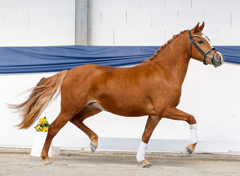 In unserer Kollektion stehen streng selektierte Youngster f�r alle Anspr�che: Ausbildungs-, Zucht- und Kinderponys Hier gelangen Sie zur Gesamtkollektion: https://ponyforum.auction Mit der dreijährigen Granada RB steht eine Vertreterin der so erfolgreichen Linie des Golden West in unserer Kollektion. Ihr Vater Gold Gelb von Golden West kann beachtliche Eigenerfolgen vorweisen, so war er u.a. Finalist bei den 3- und 4jährigen Ponys auf dem Bundeschampionat und aktuell ist er siegreich in Dressurprüfungen der Klasse M! Granadas Mutterstamm ist einer der erfolgreichsten Stämme der westfälischen Reitponyzucht, sie kommt aus dem weit verzweigten Stamm der Nibelungen. Unzählige Erfolgsponys in Sport und Zucht haben hier ihre Wurzeln. Und auch Granada bringt alles mit, um zukünftig selbst im Sport zu bestehen. Ihre Grundgangarten sind durchweg von guter Qualität, sie bewegt sich elastisch und locker. Besonders ihr Nervenkostüm zeichnet diese junge Stute aus! Sie ist zum ersten Mal in ihrem Leben von ihrem Heimatstall weg und sie benimmt sich hervorragend. Eine ganz ausgeglichene und lernfreudige junge Stute, die sich gut an ihrem Menschen orientiert und keine Fehler machen will. Direkt vom Züchter.