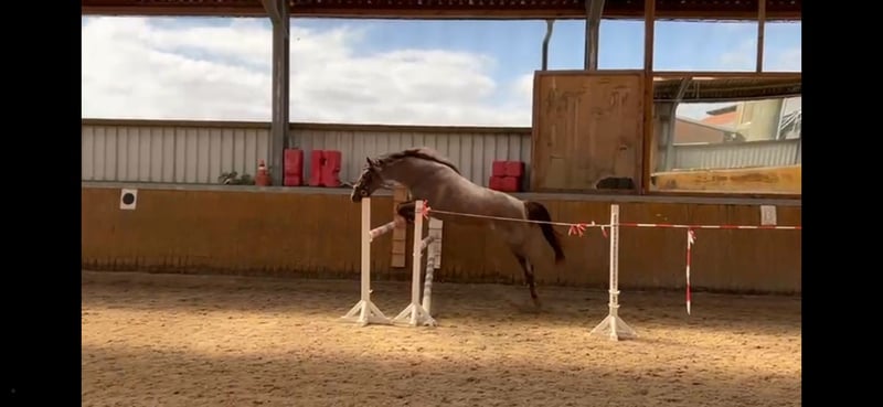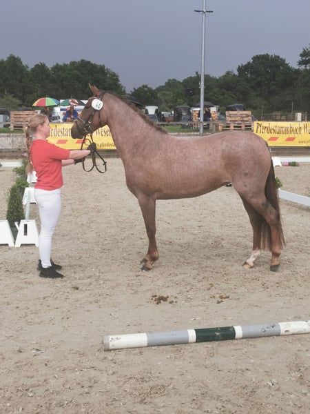 Verkaufe Deutsche Reitpony-Stute – Geburtsjahr 2022 Diese charmante Deutsche Reitpony-Stute besticht durch ihre freundliche Ausstrahlung und ihr vielversprechendes Potenzial. Geboren im Jahr 2022, präsentiert sie sich in einem attraktiven Roan-Red-Farbton, der ihre elegante Erscheinung unterstreicht. Mit einem Stockmaß von ca. 145 cm ist sie perfekt für ambitionierte Nachwuchsreiter und Ponyreiter, die Wert auf Qualität und Charakter legen. Sie ist gut geritten und zeigt eine ausgeprägte Springveranlagung. Ihre Bewegungen sind harmonisch und taktsicher, was sie zu einer idealen Basis für den Springsport macht. Die Stute ist aufmerksam, lernwillig und besitzt eine angenehme Grundhaltung, die eine angenehme Zusammenarbeit garantiert. Diese Deutsche Reitpony-Stute eignet sich sowohl für den Freizeitbereich als auch für den Turniersport und ist eine vielversprechende Partnerin für alle, die ein talentiertes und zuverlässiges Pferd suchen. Bei Interesse stehe ich gerne für weitere Informationen und eine Besichtigung zur Verfügung. Ab jetzt geht sie in weitere Ausbildung und wird auf Turnier vorgestellt