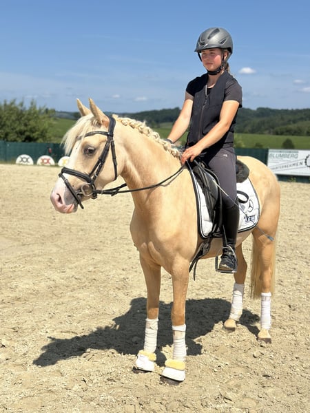 Tolles Nachwuchspony mit 3 sehr guten GGA! Ca. 4 Wochen angeritten und zeigt dabei bereits einen sehr guten Charakter, wird auch sehr gut für jugendliche Reiter passen.