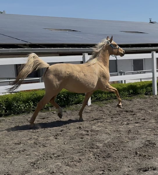 Beautiful, sweet, and energetic daughter of FS MR RIGHT. MR Highlight, as the name suggests, is a real eye-catcher. With her wonderful special color, she immediately catches everyone's attention. Due to a reduction in our stock, we unfortunately have to part with this amazing mare. She is familiar with trailer loading, grooming, leading, and lunging. She is regularly vaccinated, dewormed, and microchipped. She is used to the farrier who comes every 6 weeks and is very well-behaved during the process. We wish for her a great home that will continue to support her, as she has quality. She has three super nice gaits. If you have any further questions, we are happy to help or if you are interested in videos, please call 01602294861.