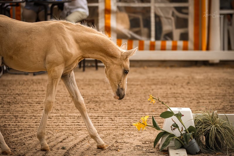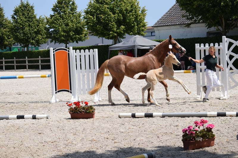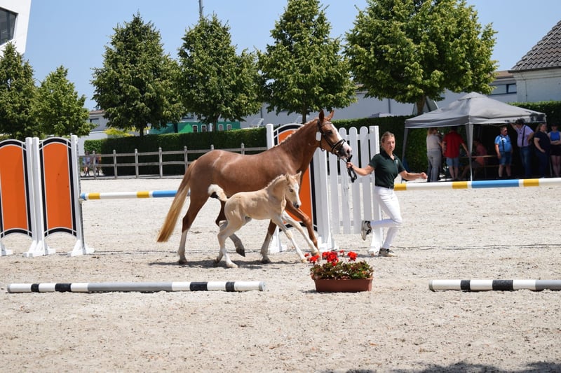 We offer our four-year-old state premium mare "Dating's Dilanka" with an excellent pedigree (Dating AT NRW x FS Champion de Luxe), in foal for 2026 to "D-Gold AT NRW" and with a prize-winning, very typy, expressive colt at foot, with outstanding movement potential (also by the top stallion and successful Bundeschampion "D-Gold AT NRW"). Dating's Dilanka is exceptionally calm, absolutely clear-minded, very intelligent, and highly willing to learn. A unique opportunity for breeders who value quality, proven bloodlines, and future prospects. A comprehensive future-oriented package for connoisseurs with quality that convinces. For questions or interest, please call. Tel.: 024565060725. No emails, please!