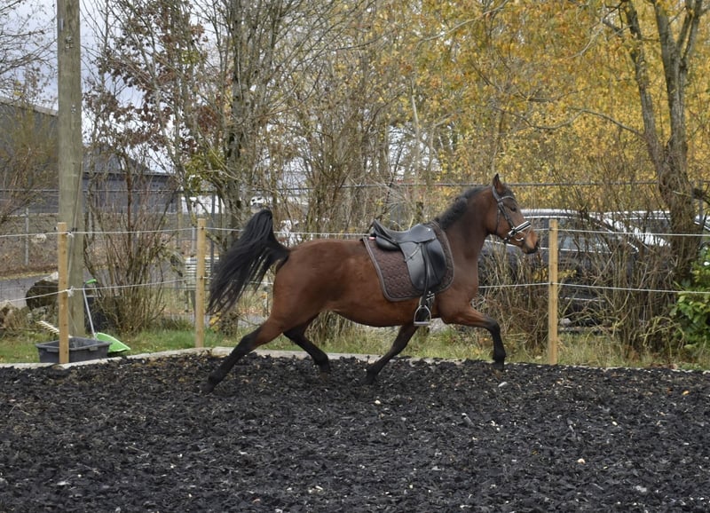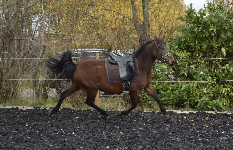 German Riding Pony - Mare with Excellent Movement For sale is a charming mare, a German Riding Pony born in 2021. This talented dark bay mare measures 148 cm and is ideally suited for dressage. She impresses with her appealing presence and strong character. Given her young age, she offers great potential for training and development in dressage. The mare has already gained initial experience handling riders. Due to her age, she is more suitable for experienced competitive riders or ambitious leisure riders who can provide her with the necessary confidence and guidance. If you are interested or require further information, please feel free to contact me. We invite you to visit and meet this wonderful mare in person!