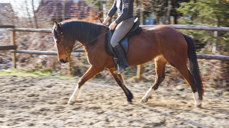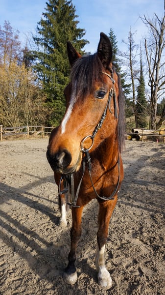Edessa is a 4-year-old athletic mare with a big heart. She has excellent movement, enjoys pole work and small jumps, and easily goes alone into the outdoor arena or on rides. Sometimes she can be sensitive and a bit particular, but she remains well-behaved and mentally clear, never bucking or rearing. She is in perfect health with clean, correctly conformed legs. She has a sporty build and is well-suited for adult riders.