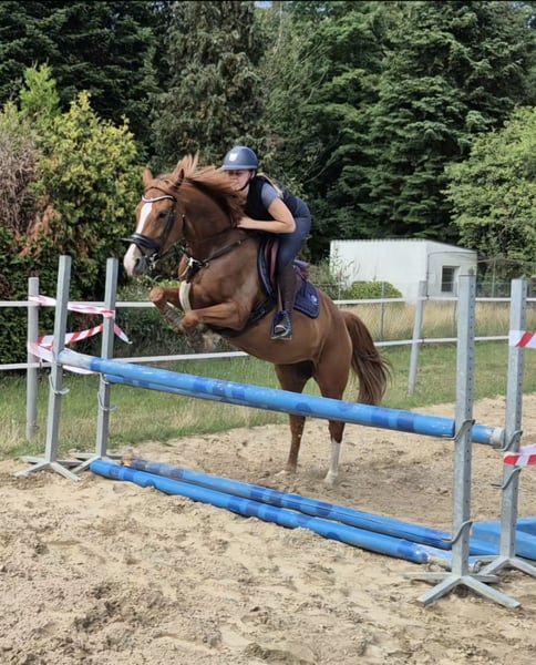 **Verkaufsanzeige: Deutsches Reitpony Stute** Zum Verkauf steht eine bezaubernde Deutsche Reitpony Stute, geboren im Jahr 2021. Sie ist ein wunderschöner Fuchs mit einem Stockmaß von 148 cm und eignet sich hervorragend für den Dressursport. Diese talentierte Stute überzeugt nicht nur durch ihre ansprechende Farbe, sondern auch durch ihren freundlichen Charakter und ihre Lernbereitschaft. Sie zeigt bereits vielversprechende Ansätze in der Dressur und hat großes Potenzial für die Zukunft. Auch im Springen und Gelände zeigt sie Talent, welches aber momentan nicht gefördert wird. Die Stute ist ein Traum im Umgang und eignet sich sowohl für erfahrene Reiter als auch für ambitionierte Einsteiger oder Kinder. Sie ist regelmäßig geimpft, entwurmt und besitzt einen aktuellen Pass. Sie war in ihrem Leben noch nie krank oder verletzt und ist topfit. Bei Interesse oder weiteren Fragen stehe ich Ihnen gerne zur Verfügung. Besuchen Sie uns und überzeugen Sie sich selbst von diesem tollen Pony!