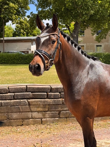 **Sales Advertisement: Charming German Riding Pony Mare** For sale is a beautiful German Riding Pony mare, born in 2022. With her elegant brown coat and a height of 150 cm, she is truly an eye-catcher both in appearance and character. This talented mare shows great potential in dressage and is well-suited for ambitious riders who enjoy training a young horse. She is well-mannered, well-educated, and already shows initial progress in her work under saddle. Our mare is healthy, regularly vaccinated, and dewormed. She is familiar with handling other horses and is manageable both in a herd and alone. If you are looking for a loving and talented partner for the future, we look forward to your message. Video available. State premium candidate!!! Current vet check available!!! Trial riding possible by appointment. Trial riding costs €30 and will be deducted from the purchase price.
