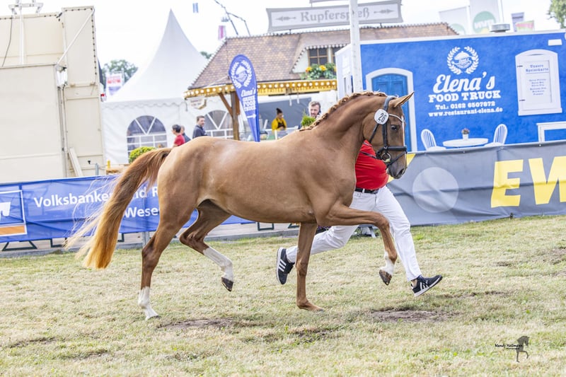 Zum Verkauf steht eine wunderschöne, talentierte Reitponystute im XL-Format. Diese junge Dame überzeugt nicht nur durch ihre ansprechende Farbe, sondern auch durch ihr freundliches Wesen und ihre Lernbereitschaft. Sie ist bestens für die Dressur geeignet und zeigt bereits vielversprechende Ansätze in der Ausbildung. Die Stute ist gut im Umgang, brav im Stall und hat eine positive Einstellung zu Arbeit und Training. Sie eignet sich sowohl für erfahrene Reiter als auch für ambitionierte Reiter, die ihr Potenzial weiter fördern möchten. Deichdeern hat ihre SLP in Vechta erfolgreich mit einer 7,43 abgelegt. Weiter wurde sie auf der Elitestutenschau des Pferdestammbuchs Weser-Ems e.V. mit der Staatsprämienanwardschaft ausgezeichnet und belegte in ihrem Ring den 1b Platz. Bei Interesse oder für weitere Informationen stehe ich Ihnen gerne zur Verfügung. Verkauf nur in fördernde Hände. Wir freuen uns auf Ihre Nachricht!