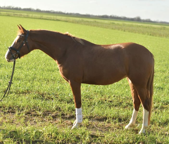 For Sale: Calida – the Loving Show Pony Mare! We are pleased to introduce Calida, a charming German riding pony mare that we acquired as a foal last summer. After a brief acclimatization period, we have now been working with her for three weeks and are enjoying every moment. Calida already demonstrates remarkable talent: she rides calmly and confidently in the arena – without a longe line and even on unfamiliar grounds! Her calm and friendly nature makes her an ideal partner, especially for children. We are confident she has the potential to become a wonderful competition pony. Additionally, Calida has a clean X-ray certificate and is in excellent health. She also performs very well in the field and easily handles small rides outside. **Pre-ride:** The pre-ride of this lovely pony costs €30. **Special Offer:** Immediate purchase entitles you to a 5% discount on the purchase price! If you are looking for a loving, talented pony with the potential to become a true children’s favorite, Calida is the perfect choice! Contact us for more information or to arrange a viewing.