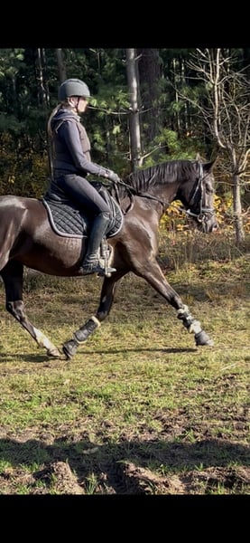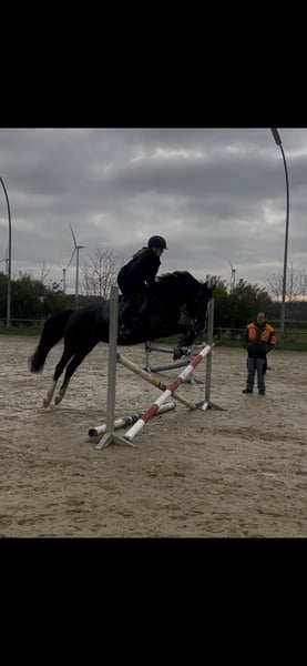 À vendre, notre jument poney de 3,5 ans. Un véritable eye-catcher : élégante, en robe noire smoky black, avec 4 chaudes blanches et une étoile. Issue d'une souche primée d'État ! Gold premium comme poulain, distinguée en tant que trois ans avec la prime de fédération. Elle est bien montable. Connaît la carrière, l’aire d’équitation, le terrain et les premiers sauts sous la selle. Elle possède un caractère excellent et reste calme dans diverses situations. Facile à charger, sage lors du ferrage. Elle aime le travail à la longe et est très motivée face à de nouvelles tâches. Actuellement ferrée à l’avant, vaccinée, vermifugée et radiographiée. Son équipement peut être acheté séparément, sur demande. Une rencontre est possible à tout moment sur rendez-vous.
