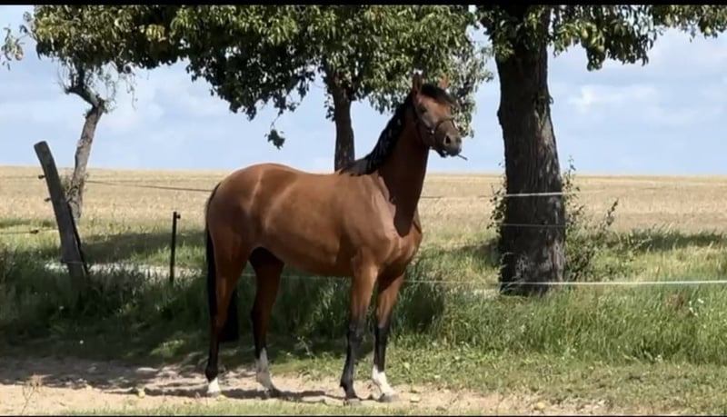 hübsche fromme Reitponystute (DR) sucht ein Zuhause; sie ist auf der Koppel mit ihresgleichen groß geworden; vor einem halben Jahr eingeritten, seitdem nicht weiter gearbeitet; sensibel und gutmütig, samt der Größe gut für Mädchen/Frauen geeignet; bei uns heißt sie liebevoll "Sonnenschein"; Besichtigung ausdrücklich erwünscht und weitere Erläuterungen gern per Telefon;