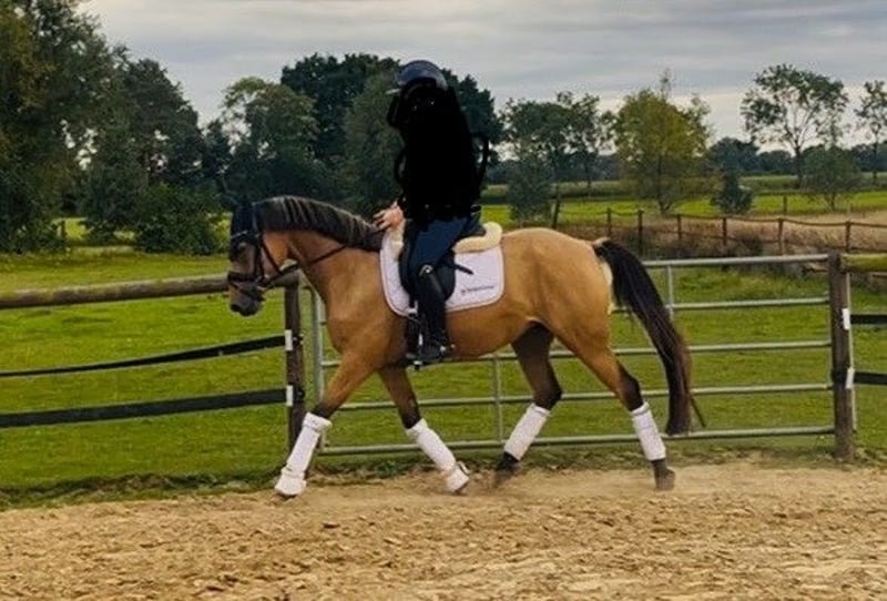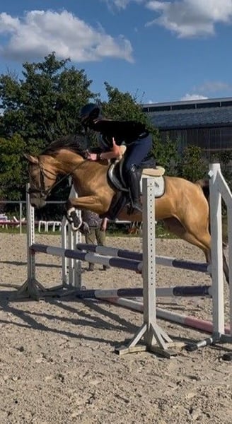 For sale is my competitive sport pony mare, Cascada, with an current height of 14.6 hh. Her highly interesting pedigree by Dimaggio Se.M. out of a Coconut Dream mare provides her with excellent prerequisites for sport. Cascada impresses with her elegant conformation and charming appearance. In daily handling, she is always straightforward and people-oriented. Under saddle, she demonstrates talent with energetic and elastic movements, and she jumps flying changes playfully. Her skills in show jumping are particularly noteworthy; she is already ready for competitions. She is exceptionally talented, brave, and has a very good overview at the jump. She can be ridden easily without a saddle and by small children. At her first competition, she was very calm and relaxed. She is familiar with the veterinarian, farrier, dogs, and cats, has no vices, and loads well. She is exempt from hernia. Thanks to her rideability and pleasant character, she is suitable for ambitious teenagers as well as adults. Cascada is a promising young mare with a bright future, convincing both in sport and character. She is used to 24/7 turnout, stable, and paddock; currently, she is in a mixed-age herd. She has a flawless X-ray certificate and is clinically sound with no findings. A suitable saddle is included in the price. Videos can be sent via WhatsApp upon serious inquiry. Price negotiable, priority given to place.