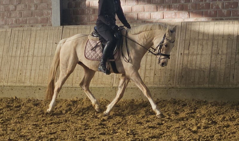 Calise SI es una poni alemana de aproximadamente 1,48 m de altura, con excelentes pedigríes. Aún crecerá y se desarrollará un poco más. Proviene de la línea de padre: Cassini, FS Cocky Dundee, Go Go Girl/Be my Crazy Girl, Spring Star’s Spirit, Beyonce. Calise llega directamente del criador. Recientemente ha sido montada con suavidad y antes ha podido crecer y desarrollarse en la manada. :-) Tiene potencial para la doma y el salto, aunque hay que destacar que es un poni ideal para niños. Tiene un carácter 1A, es muy dulce y tranquila en todo momento. Ponis así son muy raros, ¡Calise es una verdadera joya! Hasta ahora siempre ha estado sana. Si hay interés en la compra, se puede realizar un chequeo veterinario. Para más información, no duden en llamarnos al: 0177/2721831.