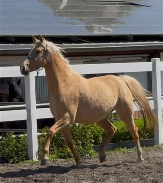 Prachtige, lieve en beweegingssterke dochter van Dating AT x Champion Deluxe. DARLING, zoals haar naam al aangeeft, is echt een klein goudschatje. Vanwege een verkleining van de voorraad bieden wij deze geweldige merrie helaas te koop aan. Ze kent het in- en uitladen van de trailer, poetsen, leiden en longeren. Zonder zadel hebben we al eens op haar gezeten. In december hebben we haar voor het eerst aangezadeld, en dat ging heel gemakkelijk. Ze is zo mega braaf en leert snel. En ze wil altijd graag gefallen. Dat maakt haar heel cool en relaxed. Ze heeft een heel lief karakter. Ze is regelmatig gevaccineerd, ontwormd en gechipt. Ze kent de hoefsmid die elke 6 weken komt en is daarbij zeer braaf. We wensen haar een geweldig thuis waar ze verder gestimuleerd wordt, want ze heeft kwaliteit in overvloed. Ze beschikt over drie prachtige gangen. Ze is een zeer nieuwsgierige en liefdevolle merrie die altijd haar beste kant wil laten zien. Vanwege haar uitstekende afstamming is ze zeker ook interessant voor de fokkerij. Ze is heel sociaal en kan goed overweg met elk ander paard. Bij ons is ze altijd gezond geweest en heeft de dierenarts alleen voor vaccinaties gezien. Voor meer vragen of interesse in video's van haar vrij lopen, kunt u contact opnemen via 01602294861.