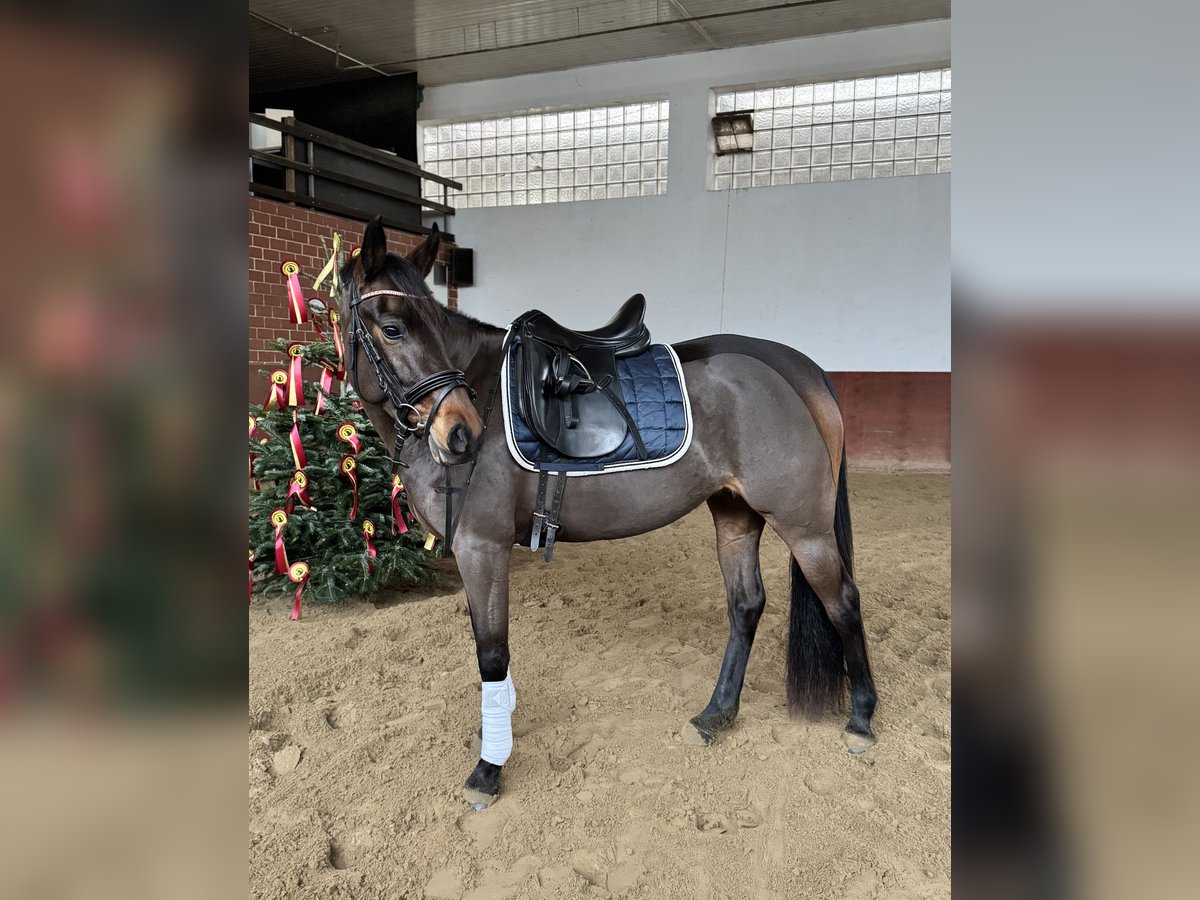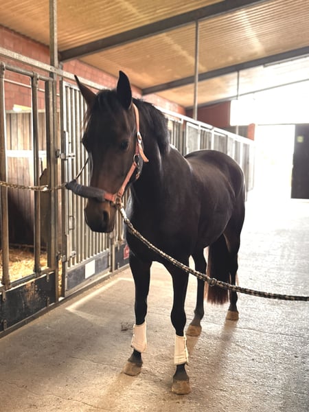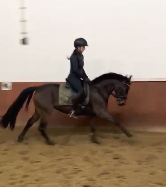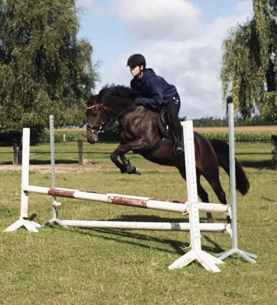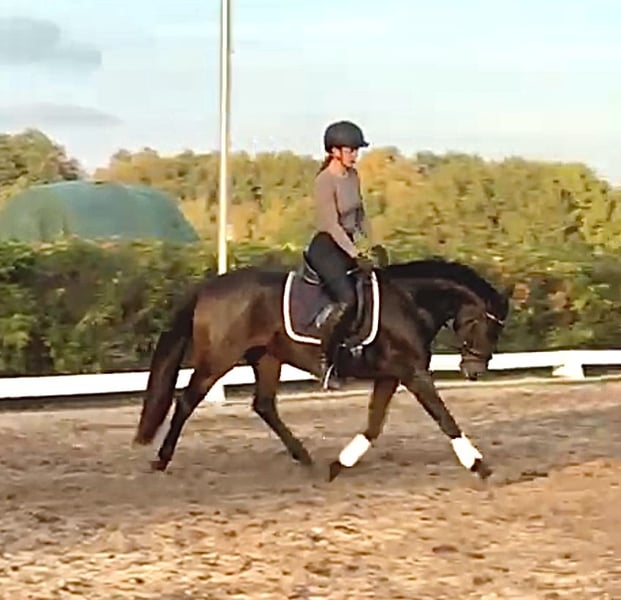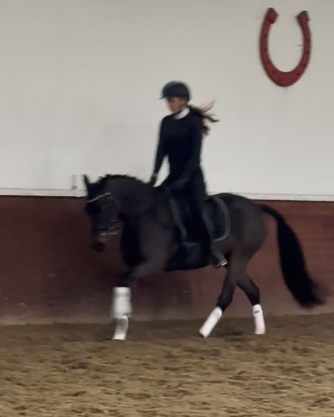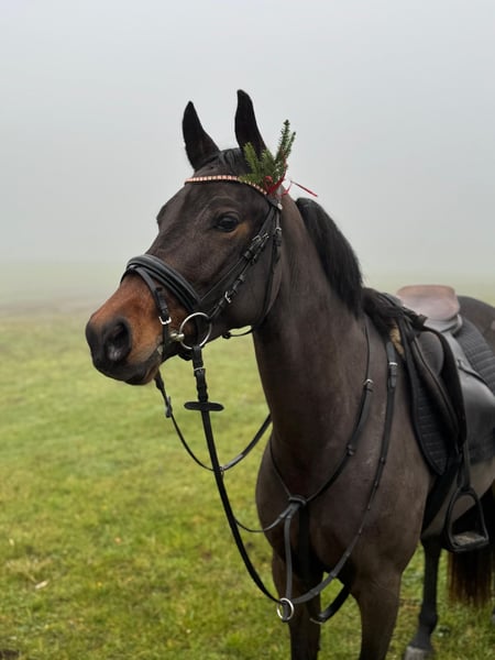 Brillant is a solidly trained, sensitive mare with great potential for both sport and leisure riding. She is confident off-road, eager to work, and enjoys dressage and jumping. She also demonstrates a clear head and a calm demeanor during fox hunting, combined with the necessary drive. Thanks to her movement and her calm, balanced temperament, she would also be very well suited as a hunter pony. She responds sensitively to aids and therefore requires a calm, balanced rider who can provide her with confidence. In daily handling, she is very well-behaved, straightforward, and affectionate. A versatile, easy-to-ride pony with a pleasant character – ideal for ambitious riders seeking a young horse with a solid foundation and development potential. Please feel free to contact us with any questions or if you are interested!