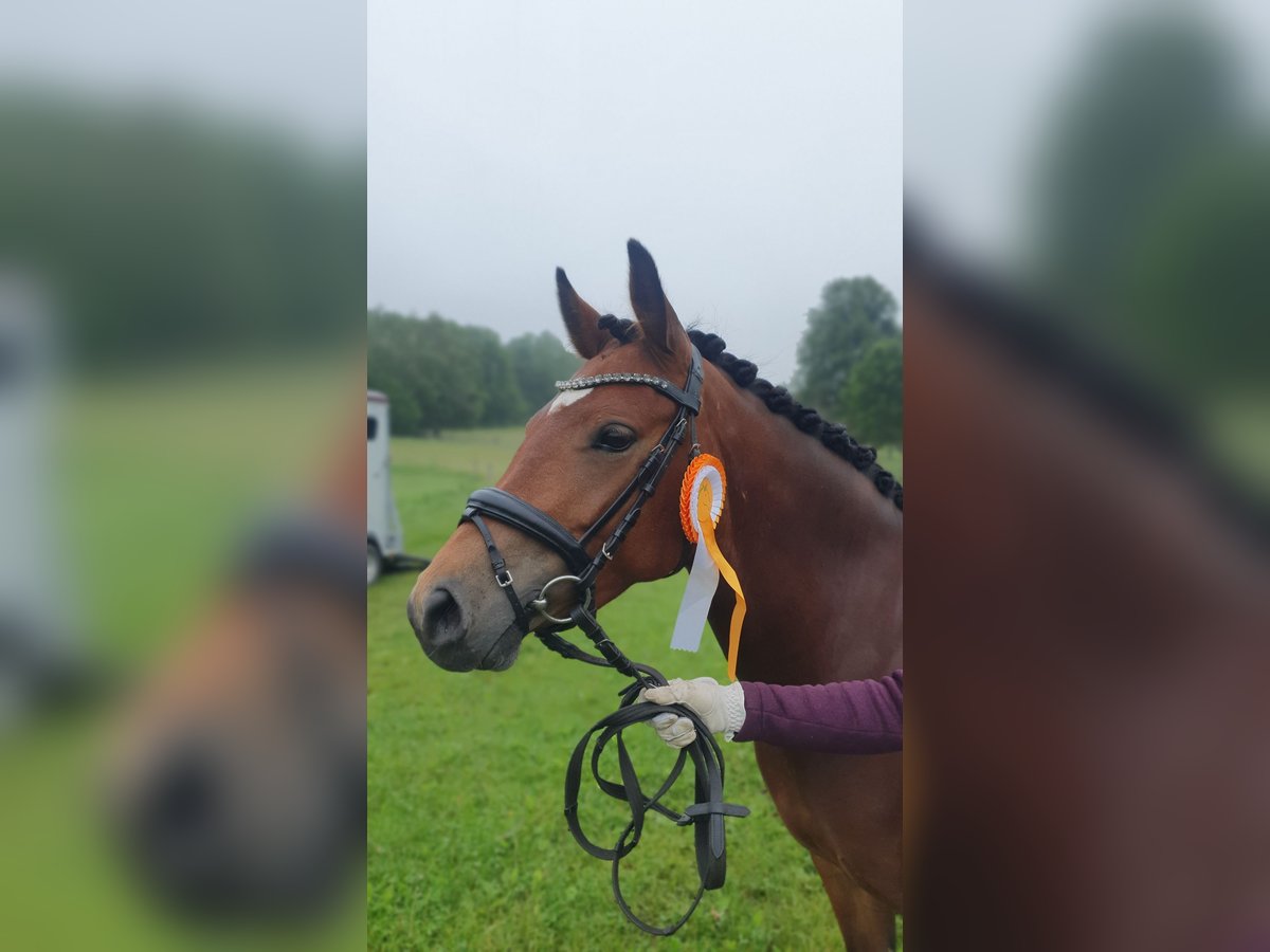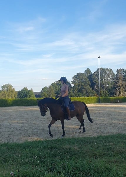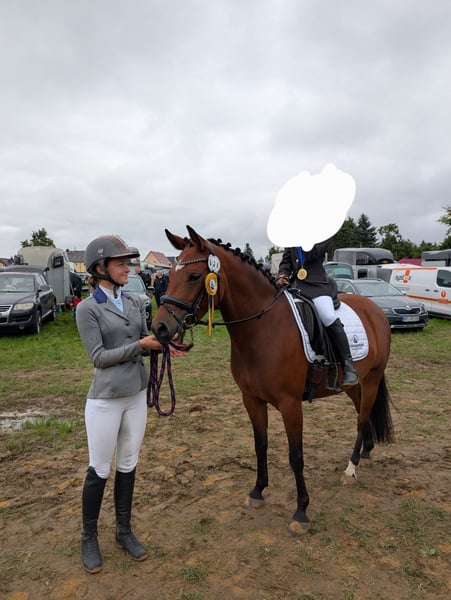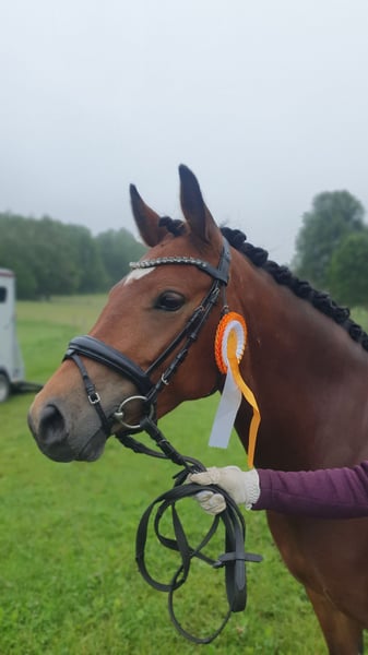 "Very Sweet" Zum Verkauf steht eine wunderschöne deutsche Reitpony-Stute, geboren im Jahr 2020. Mit ihren 1,40 m deckt sie den Reiter dennoch gut ab. Die Stute ist ideal für die Freizeitgestaltung und begeistert durch ihr freundliches Wesen und ihre angenehme Art. Sie konnte sie in der Dressurpferde A und in der A Dressur platzieren. Führzügel WB ist sie auch schon gegangen. Sweet geht allein oder in der Gruppe ins Gelände. Dabei zeigt sie sich immer aufgeschlossen und händelbar. Auch von Kindern! Stangen und ein kleines Cavaletti kennt sie, ist aber nicht weiter gefördert worden. Sonstiges: Verladefrom Geht Barhuf Verbandsprämien Stute Entnote 7,5 Bei Interesse oder für weitere Informationen stehe ich gerne zur Verfügung.