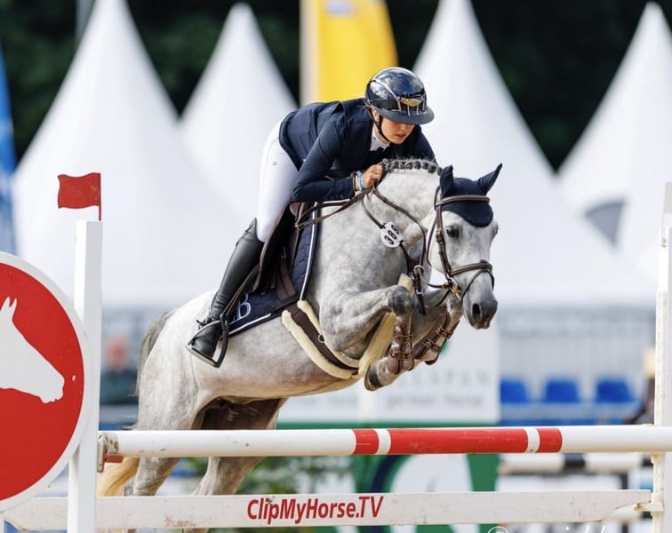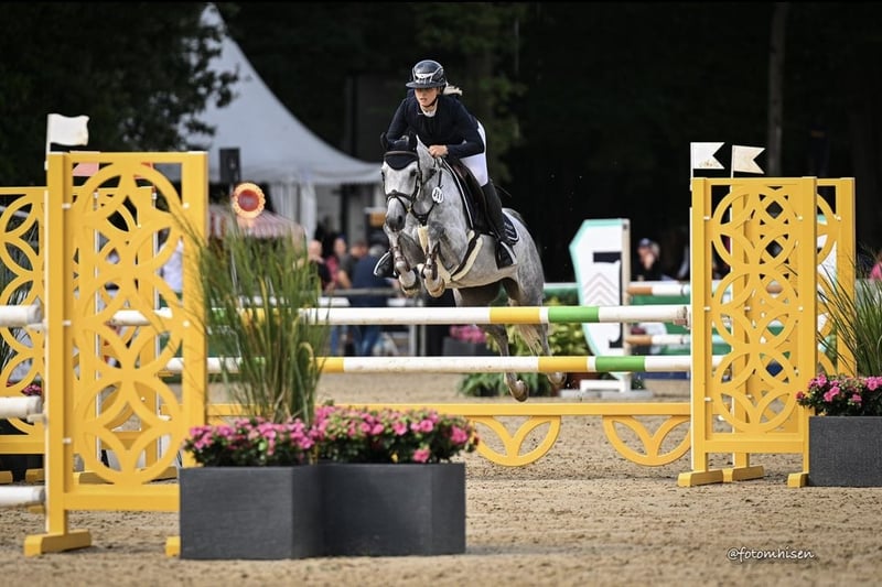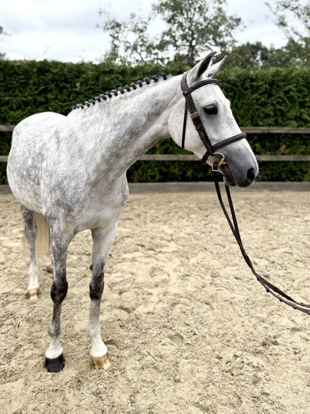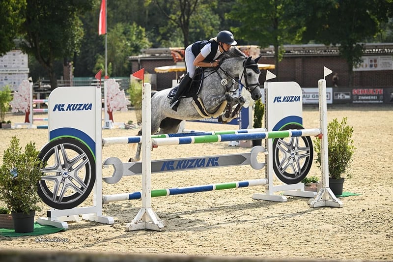 Te koop staat een prachtige Duitse rijpony-merrie, geboren in 2019. Blümchen WE is een zeer getalenteerde pony die in de springarena altijd meer dan 100 procent geeft en er alles aan doet om het goed te doen. Ze is heel makkelijk te rijden en geeft de ruiter een geweldig gevoel. - Vliegende wissels in “automatische modus”. Ze heeft op vierjarige leeftijd een veulen gehad en is voorzichtig opgeleid. In de daaropvolgende jaren heeft ze al diverse overwinningen en placeringen behaald tot en met L-klasse. Ook tegen grote paarden met een 8-waardering geplaatst. Daarnaast heeft ze de titel van vice-Bundeschampion voor zesjarige springponys gewonnen! In de omgang zeer gemakkelijk. Of het nu gaat om transport, hoefsmid, poetsplaats of een buitenrit, ze laat zich niet uit balans brengen. Ideaal voor de ambitieuze jonge ruiter! Een recente röntgentest met goedkeuring is aanwezig. Bij interesse of voor verdere vragen sta ik graag voor u klaar. U kunt me bereiken op 0172 3241632.