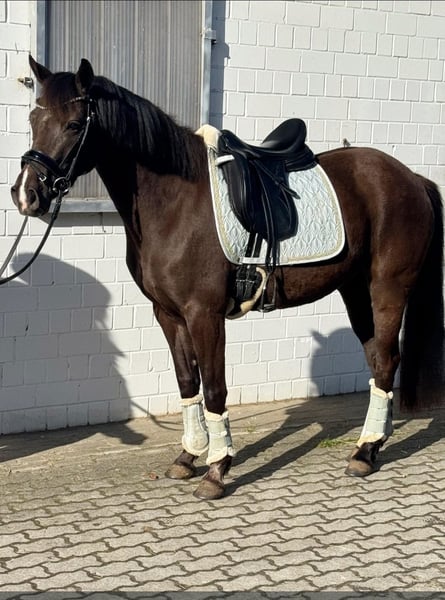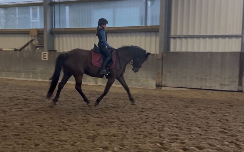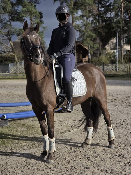 Zum Verkauf steht eine charmante Pony-Stute, geboren 2020, mit einem Stockmaß von 1,48 m. Sie deckt auch Erwachsene sehr gut ab und wird aktuell sowohl von einem 10-jährigen Mädchen als auch von einer Jugendlichen geritten – ein echtes Allroundpony für ambitionierte Reiter. Ihre besondere Stärke liegt eindeutig in der Dressur: Mit ihren raumgreifenden, elastischen Gangarten und ihrer natürlichen Balance weiß sie zu überzeugen. Unter dem Sattel zeigt sie sich stets aufmerksam, motiviert und angenehm fokussiert. Sie ist altersgerecht auf solidem A-Niveau ausgebildet und bringt beste Voraussetzungen für eine weitere Förderung im Dressursport mit. Auch im täglichen Umgang ist sie ein absoluter Schatz: brav, unkompliziert und stets zuverlässig. Sie steht überall gelassen, ist nicht schreckhaft und überzeugt durch ihr freundliches, ausgeglichenes Wesen. Ein Pony mit viel Qualität, das sowohl im täglichen Training als auch auf dem Turnier Freude bereitet. Bei Interesse freuen wir uns über eine Nachricht! Videos schicke ich gerne auf Anfrage