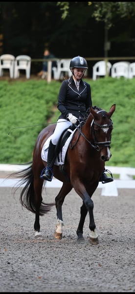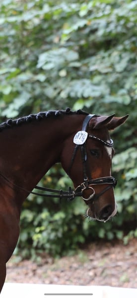 For sale: Elegant and well-trained German Riding Pony mare This graceful and well-trained German Riding Pony mare was foaled in 2020. With her attractive bay coat and a height at the withers of 14.1 hh, she combines typical pony elegance with a solid dressage foundation. The mare is ideally suited for an ambitious leisure rider or an aspiring dressage rider. She demonstrates a pleasant basic gait, is well-schooled, and has a friendly, open-minded temperament. Thanks to her solid training and balanced character, she is a reliable partner for both young riders and experienced horse enthusiasts. She has been regularly worked, shows good collection ability, and is ready to further develop her skills. The mare is healthy, free of known health issues, and has been consistently cared for with proper and attentive management. If interested or for further questions, I am happy to provide information and arrange a viewing. This talented dressage horse is looking forward to a new, loving family that will continue to support her development.