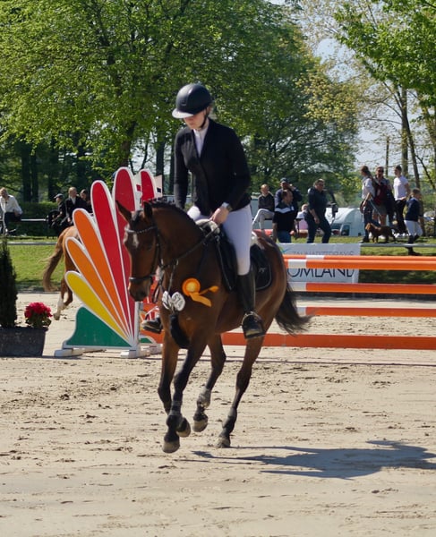 Te koop staat onze 7-jarige Duitse Reitpony merrie Rina DH. De sympathieke merrie overtuigt zowel door haar instelling als door haar eerdere sportieve successen. Ze heeft al een springpony proef L met 8,5 gewonnen. In 2024 eindigde ze in de finale van de vijfjarige springpony's op het Bundeschampionat. Daarnaast is ze meerdere keren geplaatst in springwedstrijden van klasse A**. Een bijzonder hoogtepunt in haar carrière is de titel Westfalenkampioen 2024 bij de vijfjarige springpony's, evenals de vice-Westfalenkampioenstitel 2025 bij de zesjarige springpony's. Rina is zeer lichtberijdbaar, altijd gemotiveerd tijdens het rijden en toont veel overzicht en een mooie springlijn. Ze is zeer voorzichtig bij het springen, maar beschikt tegelijk over voldoende vermogen. Ze wil haar ruiter altijd naar tevredenheid stellen en presenteert zich daarbij eerlijk en prestatiedrangig. Ook in de dressuur is ze al voorgesteld en heeft ze zich kunnen plaatsen in WBO E- en A-dressuren. In de omgang is Rina braaf en makkelijk in de omgang. Ze is smederij- en trailerproof en prettig in de handling. Daarmee is ze een geweldig pony voor ambitieuze jonge ruiters die op zoek zijn naar een succesvol en tegelijk betrouwbaar sportpony.