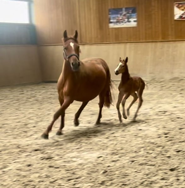 Verkaufe meine Reitpony Stute als Zuchtstute mit allerbester Abstammung! Glamour Girl von Golden Grey NRW x Dimension AT in schicker Dunkelfuchsfarbe, ist 2018 geboren und hat ein Stockmass von 141 cm. Sie ist die Halbschwester des Bundeschampion 2024 und Vizebundeschampion 2025 "DSP Goldschatz". Auch ihre Mutter, die Staatsprämienstute Diva Crema war Finalistin auf dem Bundeschampionat 2016. Aufgrund ihrer Größe haben wir sie nur eingeritten und danach ist sie nur zur Zucht eingesetzt worden. Im Umgang und beim Hufschmied ist sie sehr brav und lieb. Sie hatte bereits 2 Fohlen von FS Next Diamond in 2023 und 2024, beide Fohlen Charakterlich einwandfrei und super von der Größe. Derzeit ist sie nicht tragend. Leider muss ich sie aus Bestandsreduzierung abgeben! Sie wird nur in gute Hände und nur zur Zucht abgegeben!