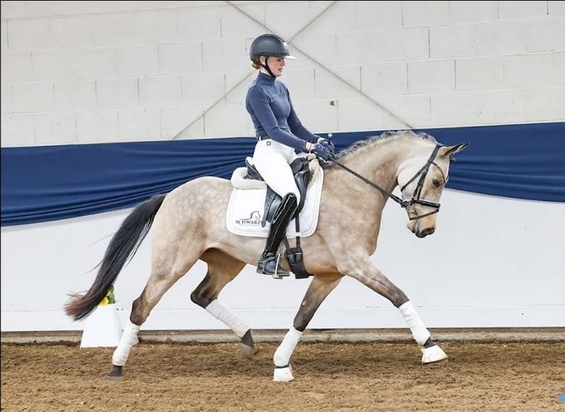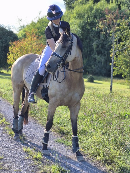✨ German Riding Pony in a stunning buckskin color – Mare, 7 years old ✨ A real eye-catcher with an excellent character! With a heavy heart, we are offering our exceptionally beautiful buckskin riding pony mare (7 years old). She impresses not only with her rare color but especially with her fantastic temperament and outstanding riding qualities. 💛 Character & Handling Absolutely lovable and very human-oriented Exemplary in the farrier’s presence Very well-behaved in the terrain – comfortable even for less confident riders Always friendly, honest, and pleasant in daily interactions 🐎 Riding & Training Sensitive and easy to ride, highly responsive to aids, eager to learn Powerful gait with excellent movement – a pony that’s a joy to watch Ideally suited for pony classes, the large arena, or even FEI competitions Lovingly and consistently trained with us Now ready to continue her journey with a new loving owner 🏡 Desired Home: We are looking for a 5-star home where she will be loved, supported, and appreciated. 📞 Contact & Viewing For further information or to arrange a viewing, please contact us by phone – strictly from serious inquiries only. 💶 Note Due to high re-ride tourism and increasingly frequent hesitation tactics, we charge a fee of €30 for trial rides. This helps to avoid unnecessary viewings and ensures that only genuinely interested buyers come. The pony is listed here again because the supposed buyers were definitely interested in purchasing, but until today, they have come up with new excuses...