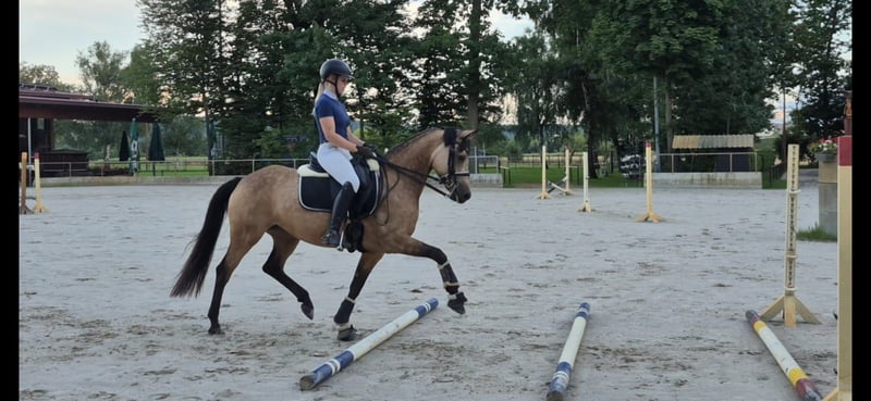✨ Niemiecka klacz reitarska w przepięknym kolorze palomino – klacz, 7 lat ✨ Prawdziwa gwiazda z doskonałym charakterem! Z ciężkim sercem oferujemy naszą wyjątkowo piękną klacz reitarską w kolorze palomino (7 lat). Zachwyca nie tylko rzadkim umaszczeniem, ale przede wszystkim wspaniałym usposobieniem i doskonałymi umiejętnościami jeździeckimi. 💛 Charakter i kontakt - Absolutnie kochana i przyjazna dla ludzi - Wzorowo obsługiwana przez kowala - Bardzo spokojna na terenie – komfortowa nawet dla niepewnych jeźdźców - Zawsze uprzejma, szczera i przyjemna w codziennym kontakcie 🐎 Jazda i szkolenie - Delikatna w jeździe, wrażliwa i dobrze reagująca na pomoce, chętna do nauki - Potężne chody z pięknym ruchem – koń dla oka - Idealna na zawody typu Pony Tour, do dużej ujeżdżalni, a nawet z perspektywą startów FEI - U nas systematycznie i z miłością dalej szkolona - Gotowa na kolejny etap z nowym, kochającym właścicielem 🏡 Wymarzony dom: Szukamy dla niej 5-gwiazdkowego domu, w którym będzie kochana, wspierana i doceniana. 📞 Kontakt i oględziny W celu uzyskania dodatkowych informacji lub umówienia się na wizytę prosimy o kontakt telefoniczny – wyłącznie od poważnych zainteresowanych. 💶 Informacja Ze względu na rosnącą popularność turystyki jeździeckiej oraz coraz częstsze taktyki wstrzymywania się od decyzji, za jazdę próbną pobieramy opłatę w wysokości 30 €.