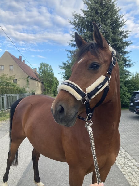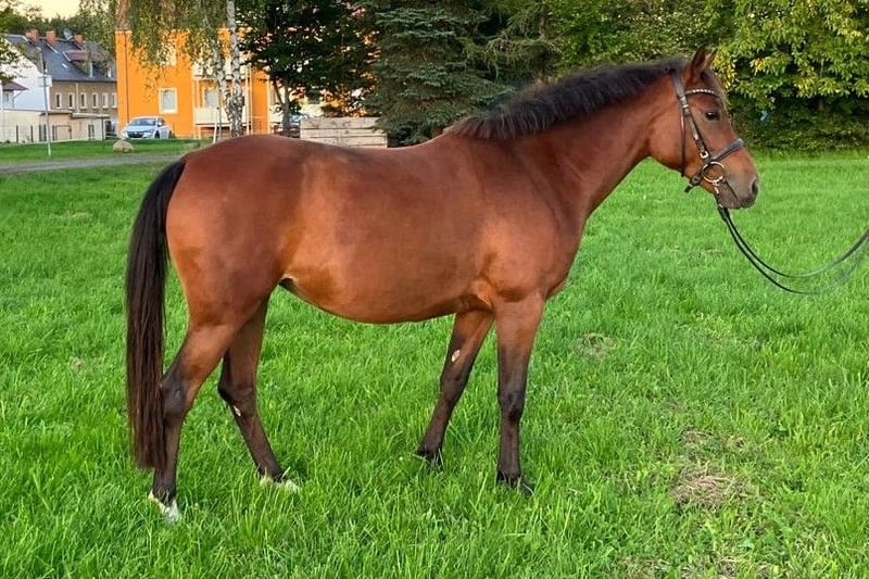 Verkaufe unsere hübsche Reitponystute Stella. Wegen Entwicklungsverzögerung in der Aufzucht wurde sie spät angeritten. Mit Stellas Ausbildung wurde erst 5jährig begonnen. Hauptsächlich wird sie von jugendlichen Reiterinnen geritten und umsorgt. Sie ist auch sehr brav im Umgang mit kleineren Kindern und für jeden Spaß zu haben. Da sie noch am Anfang der Ausbildung steht, sollte ein erfahrener Reiter die Ausbildung liebevoll und konsequent fortführen. Die Stute hat Spaß beim Springen und bei der Cavaletti-Arbeit. Im Galopp ist sie noch nicht ausbalanciert. Dies fällt ihr etwas schwer und sollte weiter gefördert werden. In der Gruppe geht sie ins Gelände, allein ist sie noch etwas unsicher. Die Arbeit an der Longe mit und ohne Reiter ist ihr vertraut. Auch Reitanfänger trägt sie brav. Stella ist jedoch kein reines Anfänger- bzw. Kinderpony. Im Winter wurde sie das erste Mal am Schlitten angespannt – auch das hat sie ohne Probleme angenommen. Die Stute geht barfuß – Schmied ist kein Problem. Das Verladen und Reiten/Training in fremder Umgebung kennt sie auch. Wir haben die Stute selbst gezogen und sie steht bei uns in einer kleinen Reitponyherde. Stella war bei uns nie ernsthaft krank, keine Kolik, Rehe o.ä. Sie steht im Sommer Tag & Nacht draußen, im Winter in einer Außenbox mit täglich ganztigig Auslauf. Sie ist typisch Pony sehr leichtfuttrig, hat aber keine Probleme mit Weidegang. Anweiden im Frühjahr ist auch kein Problem. Weitere Infos gern bei ernsthaften Anfragen per mail oder am Telefon.