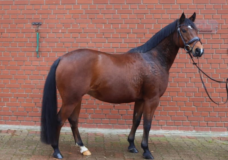 Due to a reduction in herd size, we are offering our 143 cm German Riding Pony mare, "Stella," to a caring new owner. Stella is an 8-year-old mare with a lovely pony type and excellent basic gaits. She lives with us in a small herd and has been ridden recreationally. Stella is a stunning, talented, and athletic riding pony mare with a lot of work ethic and willingness to perform, now seeking the right partner. She is trained up to E-level in dressage and show jumping, impressing with an effortless, secure jump in her jumping efforts. She has not yet been shown in competitions. Stella demonstrates a strong desire to learn and is eager to show what she can do. She is very motivated, thinks along, and provides a pleasant riding experience. Due to her temperament and occasional mareishness, we are looking for an experienced rider who enjoys further developing a talented pony. Stella is vaccinated against tetanus, dewormed, stands well for the farrier, and loads reliably. She is only sold to a good home and not to riding schools or commercial operations. Accessories such as saddle and bridle can be purchased separately. The price is negotiable for the perfect home!