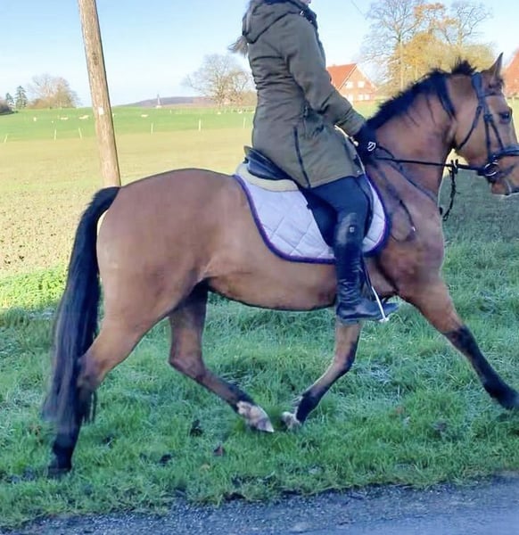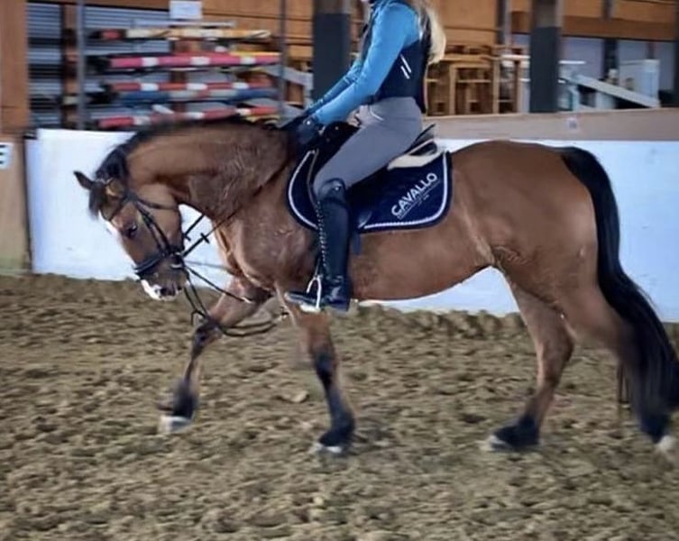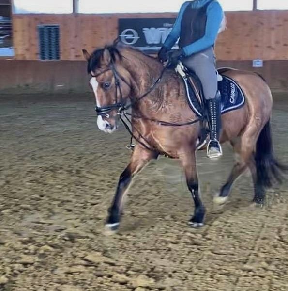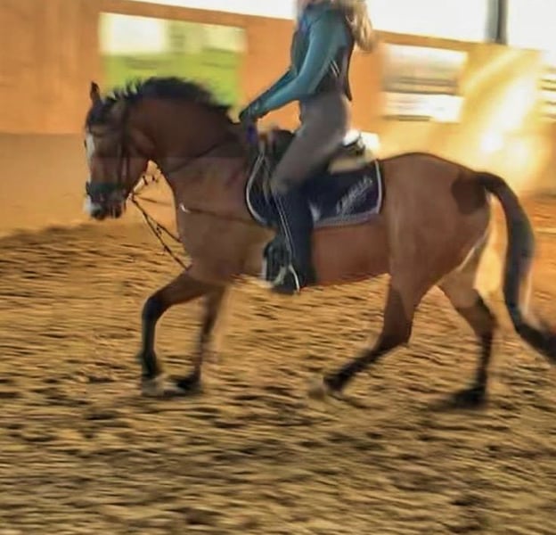 8jährige Stute (aus 2017), Falbe, Stockmaß 1,44 m mit Pass. Abstammung unbekannt. Keine Unarten. Lieb, leichtrittig, sensibel. Wird von 14 jährigem Mädchen geritten. Schmiede- und verladefromm, Barhufer. Deckt gut etwas größere Kinder oder kleinere Erwachsene ab. Wird im Reitverein im Dressurunterricht geritten. Möchte gern arbeiten. Springen und Gelände mir erfahrenen Reitern. Ist gehorsam und aufmerksam. Springen unter dem Reiter ohne Angst ca. 50-60 cm. Förderungswillig. Als Schulpony geeignet. Freispringen mit viel Herz, Go und Vermögen. Öffentliche noch nicht vorgestellt aufgrund von Reitermangel. Ideales Pferd für Jugendlichen oder leichteren Erwachsenen. Amber ist einfach ein Hingucker! Videos und weitere Bilder auf Wunsch bei ernsthaftem Interesse.