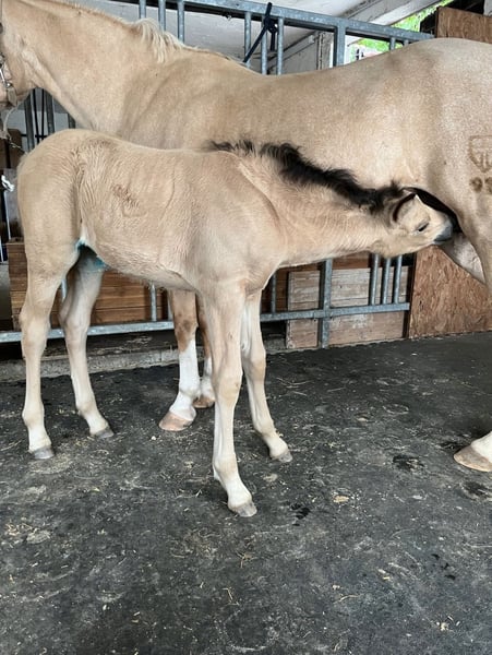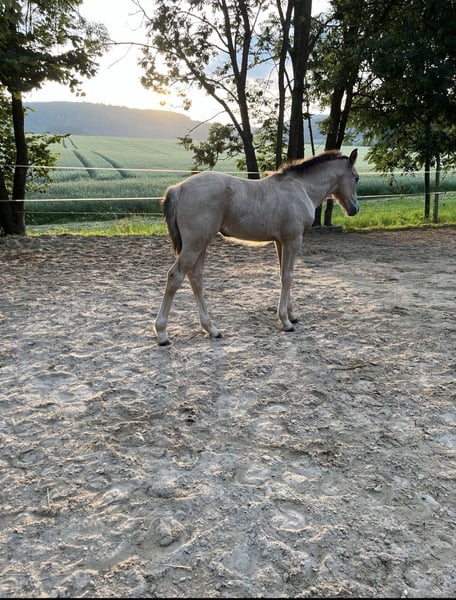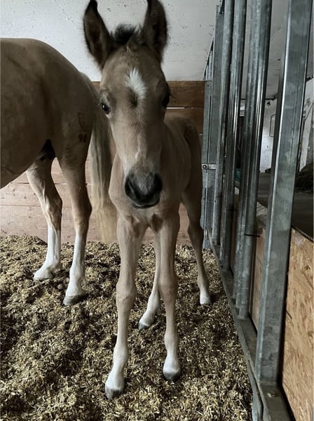 Sportlich, elegantes Deutsches Reitpony Stutfohlen in Sonderfarbe Braunisabell. Wenn alles passt, würden wir unsere La vida Loca geboren am 12.Mai 2025 in liebevolle Hände abgeben. Loca ist ein sehr agiles und aufgewecktes Fohlen mit viel go. Ihre Mutter zeigt schon eine sehr hohe Leistungsbereitschaft und wird dies sicherlich an ihre Tochter weitergeben. Endmaß ca. 1.48m . Hufe geben, Schmied, Hänger fahren und abspritzen sind kein Problem . Außerdem läuft sie schon brav bei Ausritten mit . Loca könnte im November ausziehen und besitzt volle Papiere vom Hessischen Pony Verband . Die letzen Bilder sind vom Vater, Reifenstein vom Alten Grenzhof , Welsh Cob, süddeutsch gekört. Das letzte Bild zeigt ihren Vollbruder von letztem Jahr.