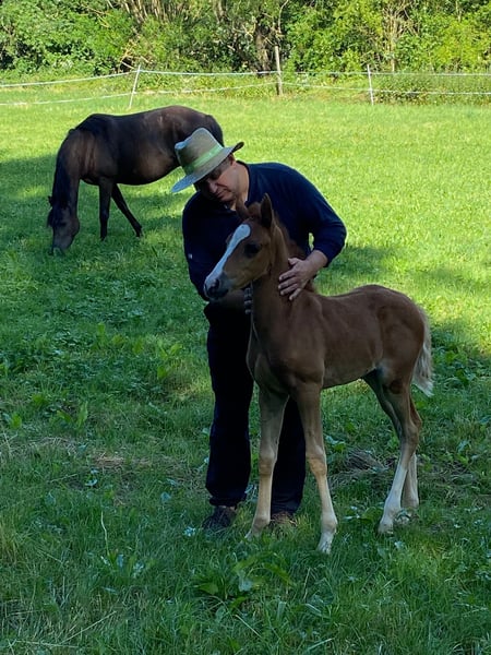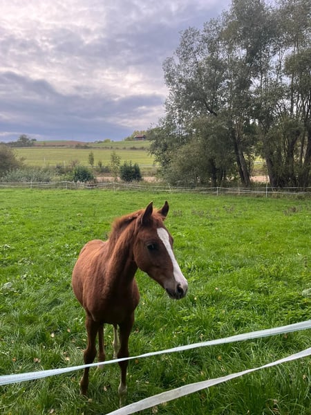 ZU VERKAUFEN: Deutsches Reitpony Stutfohlen Neverland x Golden Grey Stutfohlen aus dem letztem Jahrgang von Neverland WE (u.a. Siegerhengst, Bundeschampion, 2x Bundessiegerhengst, FEI) aus der Glossy Grace von Golden Grey NRW (u.a. 2x Vizebundeschampion, 2x Vizewestfalenchampion) Geboren 05/25. Sie ist sehr zutraulich und zahm. Wächst familiär im Offenstall direkt am Haus auf. Natürlich auch mit entsprechendem Weidegang. Das Fohlen hat tolle Bewegungen und wäre fürs Championat qualifiziert gewesen. Da ich selbst jedoch im Sommer frisch Mama geworden bin, konnte ich es leider nicht vorstellen. Die Mutterstute Glossy Grace ist eine 4-jährige Stute, die letztes Jahr von mir angeritten wurde, dann allerdings aufgrund meiner eigenen Schwangerschaft und Ihrer Trächtigkeit noch nicht weiter gefördert wurde. Sie ist Staatsprämienanwärterin und hat mehrere sporterfolgreiche sowie prämierte Vollgeschwister, eine Vollschwester lief 2023 erfolgreich Westfalenchampionat bis ins Finale und Bundeschampionat. Sie hat einen gekörten Halbbruder von Cosmopolitan. Die Großmutter des Fohlens mütterlicherseits (ebenfalls Staatsprämienstute) ist Zuchtstute und geht laut Rimondo mit Kindern kleine Turniere. Wirklich total kopfklar wie die Mutter des Fohlens auch. Kinder können die Mutterstute super easy händeln und bereits jetzt das Fohlen führen, putzen und Hufe geben. Bestes Kinderponypotential also! 🙂 Ein ganz tolles Fohlen mit Traum Charakter und viel Potential. Videos versende ich gerne auf Anfrage und natürlich kann das Fohlen nach Vereinbarung sehr gerne besichtigt werden.