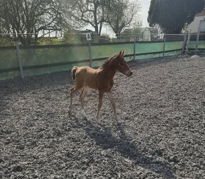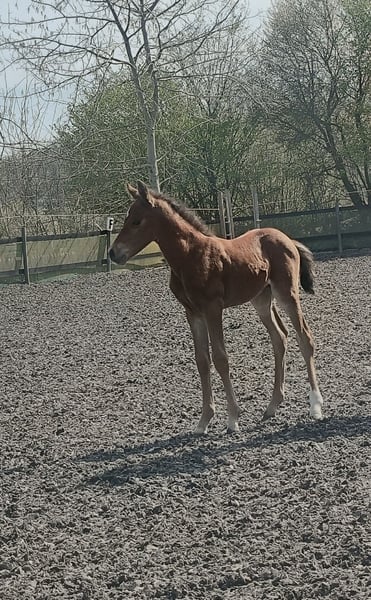 Excellence in Series: The Genetics of Champions This bay filly (born April 6, 2026) combines the best that German show jumping pony breeding has to offer today. Sire: Del Drago – The reigning national champion of 5-year-old show jumping ponies (score 8.7!). He impressed judges and spectators alike with his composure, modern conformation, and quick reflexes. Dam’s sire: Del Piero – A foundational bloodline for rideability and attitude. Del Piero has achieved international success with various young riders (including team gold at the Nations Cup) and is a proven producer of Bundeschampions. A raw diamond for the highest demands This foal captivates not only with its outstanding pedigree but also with correct conformation and a very lively, people-oriented nature. If you are looking for a partner for the show jumping arena who has absorbed the will to perform almost “with the mother’s milk,” you will find it here. Important data: Type: Pony filly (Dresden Riding Pony) Pedigree: Del Drago x Del Piero Color: Bay Potential: Show jumping / Eventing 📸 Note on the photos: Initial impressions can be seen in the gallery. As the little one continues to develop every day, additional current photos and videos will be added in the coming days. Feel free to check back or contact me directly!