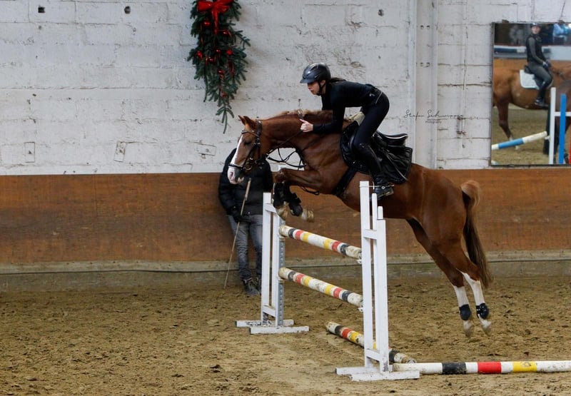 Beautiful German Riding Pony for sale. Our "Connor," from the German Riding Pony breeding farm Gestüt Steendicks, consistently presents himself as motivated and eager to perform, with excellent movement quality and a good jumping aptitude. He competes in dressage at L-level and reaches heights of up to 107 cm in jumping. Connor is a wonderful pony for training on the lunge or in free jumping, making him suitable for beginners and for all disciplines (dressage, jumping, trail riding). He is a true cuddly pony, very personable, and loves his pasture time (we prioritize plenty of turnout for the pony!). His coat color is very dark (many mistake him for a chestnut), and with four white legs, he’s a real eye-catcher. As a bare-hoofed pony, he is also very easy to handle at the blacksmith. His latest health check was clear, and he is regularly vaccinated and dewormed. We are now looking for an attentive and talented rider for our pony, someone who can learn a lot from Connor and wishes to have a loyal pony by their side for many years. The associated pony and riding equipment can optionally be purchased together. Please feel free to contact us with any questions or to arrange a personal meeting and test ride via WhatsApp at: +49 151 57124287.