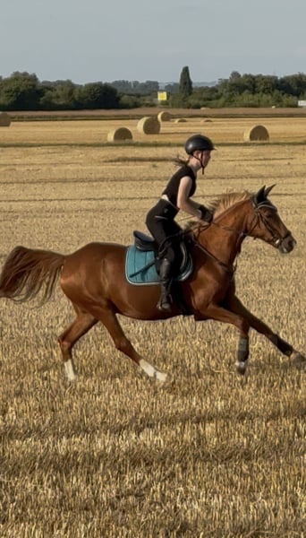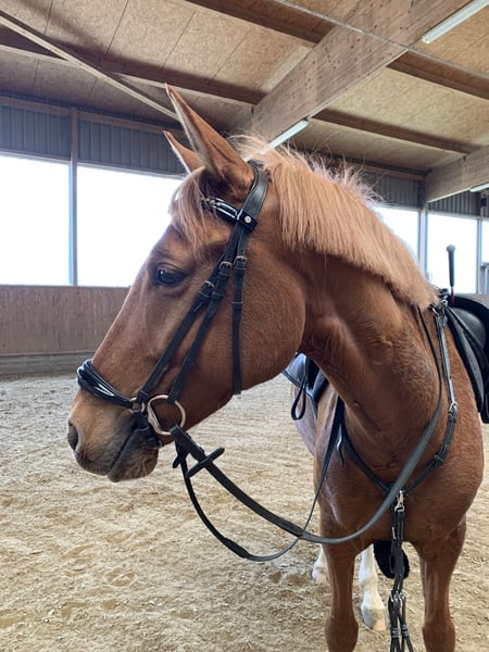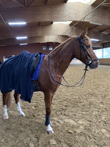 Da Vinci, known as Donni, is a handsome 10-year-old German Riding Pony gelding with a height of 1.48 m. He has been ridden recreationally and by amateurs so far, but he shows more potential. Donni is an absolute all-rounder: - Jumping & Trail: Donni loves going out for rides and showing his skills in jumping. He is always enthusiastic and has a lot of fun, and he also likes to pick up the pace. - Dressage: In dressage, he can be motivated and works well. - Leisure: reliable, well-behaved, and ready for any ride. He shows no vices such as rearing, bucking, or kicking, and he is familiar with both the farrier and the veterinarian, where he always behaves exemplary. Character: In handling, Donni is well-behaved and uncomplicated. He is particularly friendly towards children and can be easily ridden by them. With his great character and big heart, he quickly builds a bond and offers his person trust and affection. Donni is suitable for beginners and re-entrants, as well as for families. At the same time, he also provides joy for advanced riders who want to work further with him, as he cooperates well and is versatile. He can sometimes be a bit skeptical towards new situations but relaxes quickly. Those who gain his trust will have a partner for life – loyal, attentive, and cuddly. Donni is up for any fun, whether it's training, trail rides, groundwork, riding without a saddle, or just having a bit of fun – he is always well-behaved! Care: It is important to me that Donni goes to a suitable home. Ideally, a paddock paradise, active stable, or similar would be perfect. Box housing with sufficient daily turnout is also acceptable. Donni is a pony to fall in love with – well-behaved, lovable, and versatile.