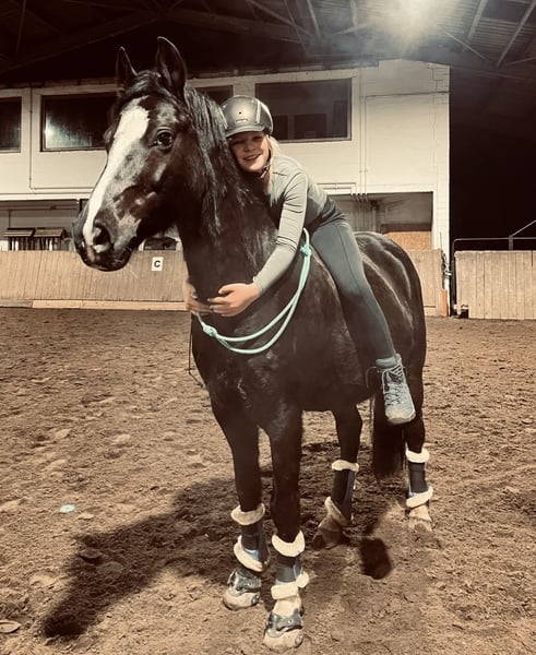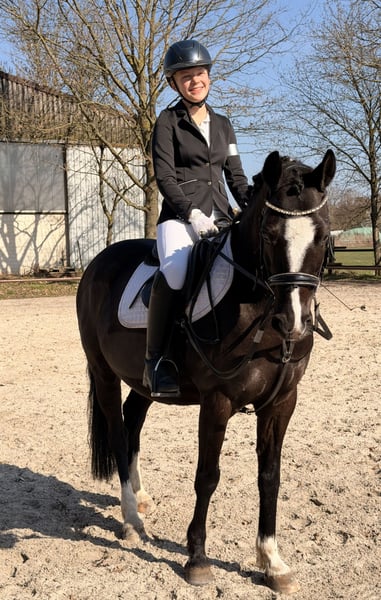 Zum Verkauf steht unser lieber, 10-jähriger Wallach Dark Dancer. Genannt wird er Dornik - nach seinem Vater und Opa. Er ist 1,48 m groß. Wir haben Dornik vor 1,5 Jahren für unsere damals noch knapp 11-jährige Tochter gekauft. Schlussendlich ist sie aber reiterlich noch nicht weit genug, um ihm alleine vollends gerecht zu werden und ich als Mutter komme nicht aus dem Reitsport, sodass wir ein neues Zuhause für ihn suchen. Dornik ist lieb und für jeden Mist zu haben: rückwärts reiten, mit Halsring, ohne Sattel, Stoppelfeld-Saison, kleine Kinder - alles kein Problem. Durch Trubel lässt er sich nicht beeindrucken: zwei Mal großes Weihnachtsreiten mit viel Publikum auf dem Hof, Auswärtstraining, Ausflug in die etwas entfernte Heide und Reitabzeichen haben wir mit ihm gemacht. Hunde, Trecker, Flugzeuge etc. kennt er alles. Bei der Vorbesitzerin hat er Turniererfahrung gesammelt und wir sind sicher, dass er das auch immer noch ohne Probleme tut. Er ist verlade- und schmiedefromm. Bei uns geht er barhuf, bei der Vorbesitzerin hatte er vorne Eisen. Hier lebt er im Offenstall in einer gemischten Herde, zuvor war er auch die Box gewöhnt. Am Springen hat Dornik besonders viel Spaß: auch bei reiterlichen Fehlern hat er noch nie geparkt und rettet die Situation zuverlässig. Er geht alleine und in der Gruppe ins Gelände. Wir könnten uns gut ein Kind vorstellen, dass reiterlich weiter ist als unsere Tochter, ein Mutter-Kind-Gespannt oder eine ponyliebende erwachsene Person! Wir haben damals eine AKU gemacht ohne Befund, die Röntgenbilder liegen vor. Er ist geimpft und gesund. Die Physio war jährlich da. Zähne wurden gerade erst gemacht. Die erste Kontaktaufnahme gerne per WhatsApp, weil ich beruflich nicht gut telefonisch erreichbar bin.