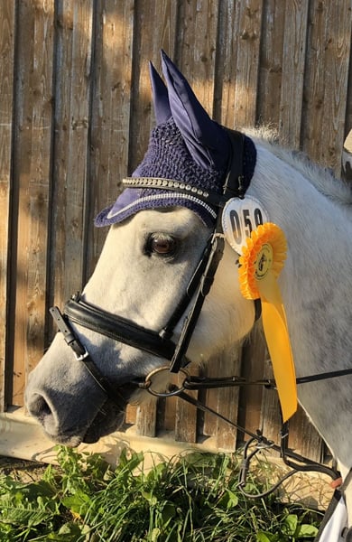 Seit 2019 bei uns, hat dieser kleine Herzensbrecher unsere Kinder von der Führzügelklasse bis zu Platzierungen bei der Goldenen Schärpe und beim Bundesnachwuchs-Vierkampf begleitet. Leider wächst er nicht mit, so dass nach knapp sieben wundervollen Jahren voller Höhepunkte unsere gemeinsame Zeit zu Ende geht. Fred ist sehr menschenbezogen, er ist ein frecher Goldschatz. Er geht alleine und in der Gruppe ins Gelände und ist neben seiner Leistungs- und Lernbereitschaft in Dressurarbeit, Springen und Gelände für jeden Spaß zu haben. Er kennt verschiedene Bodenarbeitslektionen. Er lässt sich auch von Anfängern reiten, auch an der Longe und mit Hilfszügeln. Er ist kein Gewichtsträger. Wir geben ihn nur in allerbeste Hände ab und wünschen uns für ihn ein jüngeres Kind, das er auf seinem reiterlichen Weg genauso treu begleiten wird und für das er ebenso alles geben wird, wie er es für unsere Kinder getan hat. Eine Auswahl seiner Erfolge: A-Dressur gewonnen, Kreismeister Dressur LK7 Mehrfach E-Springen gewonnen, u. a. dieses Jahr Kranichstein mit 8,6 bei über 50 Teilnehmern. Viele Siege und Platzierungen in E-Gelände / VE / Kombi E, u. a. Goldene Schärpe Einzelwertung platziert mit 8,6 in der Dressur und 9,1 im Gelände. Bundesnachwuchsvierkampf Einzelwertung platziert, IGV Trophy Hessen gewonnen. .