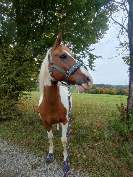 Charlie sucht flexibel zum Frühling ein neues Zuhause und damit seinen Endplatz. - Geboren 30.04.2010 - Wallach. Steht am besten nur mit Wallachen zusammen da er in der Vergangenheit manche Stuten gedeckt hat - Niederländisches Reitpony - Endmaß - sehr fein western ausgebildet Charlie ist ein sehr sensibles Pferd was sich, meiner Meinung nach seinen eigenen, festen Menschen wünscht. Er ist genauso sanft wie tollpatschig und nicht die größte Schmusebacke aber dennoch leidenschaftlicher Genießer, wenn genau die richtige Stelle gekrault wird. Er wird seit einigen Jahren nur noch freizeitmäßig geritten. Er geht sowohl alleine, als auch in der Gruppe ins Gelände wobei er alleine tatsächlich entspannter ist, mit anderen möchte er gerne unbedingt erster sein. Das ist aber ja Trainingssache. Er hört sowohl vom Boden als auch geritten sehr fein auf die Körpersprache des Menschen. 2024 hatte Charlie eine Knochenhautentzündung eines Dornfortsatzes am Übergang BWS/LWS. Dies ist vollständig abgeheilt und tierärztlich abgesegnet. Auf Wunsch können gerne Ultraschallbilder angeschaut werden. Zur gleichen Zeit dieser Entzündung war mein zweites Pony infektiös erkrankt. Beides in Summe führte dazu, dass Charlie 8 Wochen lang am Stück nur stand, 4 Wochen mit Boxenruhe. Seitdem hatten/haben wir mit einer Trageerschöpfung zu kämpfen die jedoch mit Osteo und Trainerin aktiv angegangen wird. Zur Zeit steht er schon wieder ziemlich gut da und ist aktiv im Reittraining, muskulär müssen wir gerade aber noch einiges aufholen. Die Osteopathin war schon sehr zufrieden und benötigt ihrer Aussage nach keine weiteren Termine Die Trainingsmöglichkeiten an meinem aktuell Stall sind leider sehr sehr begrenzt, weswegen der Muskelaufbau natürlich sehr viel langsamer von statten geht als es woanders vielleicht der Fall wäre. Eine Übernahme des Ponys wäre also schön jetzt in "nur mäßig" auftrainiertem Zustand oder zum Fruhling hin nach weiterem Training möglich. Der Preis ist absolute Verhandlungssache je nach Zeitpunkt der Übernahme und des Trainingszustands. Das Geld steht bei mir tatsächlich an letzter Stelle und ich wünsche mir am allermeisten, dass er seinen Menschen findet. Gleichzeitig ist er ein sehr braves und sehr gut ausgebildetes Pferd, welches natürlich nicht verschenkt wird. In auftrainiertem Zustand würde ich ihn im Sommer für 4.000€ VB einstellen. Ein längeres Kennenlernen ist möglich und gerne gesehen! Bei Fragen meldet euch gerne jederzeit. Es gibt natürlich noch viel mehr über ihn zu erzählen als das alles hier!